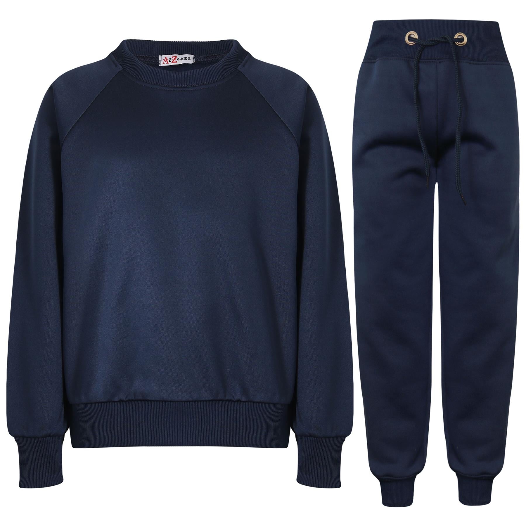 A2Z 4 Kids Girls Boys Unisex Plain Navy Color Raglan Sleeves Fleece Tracksuit Jumper Sweatshirts & Bottom Jogging Suit Joggers Age 5 6 7 8 9 10 11 12 13 Years