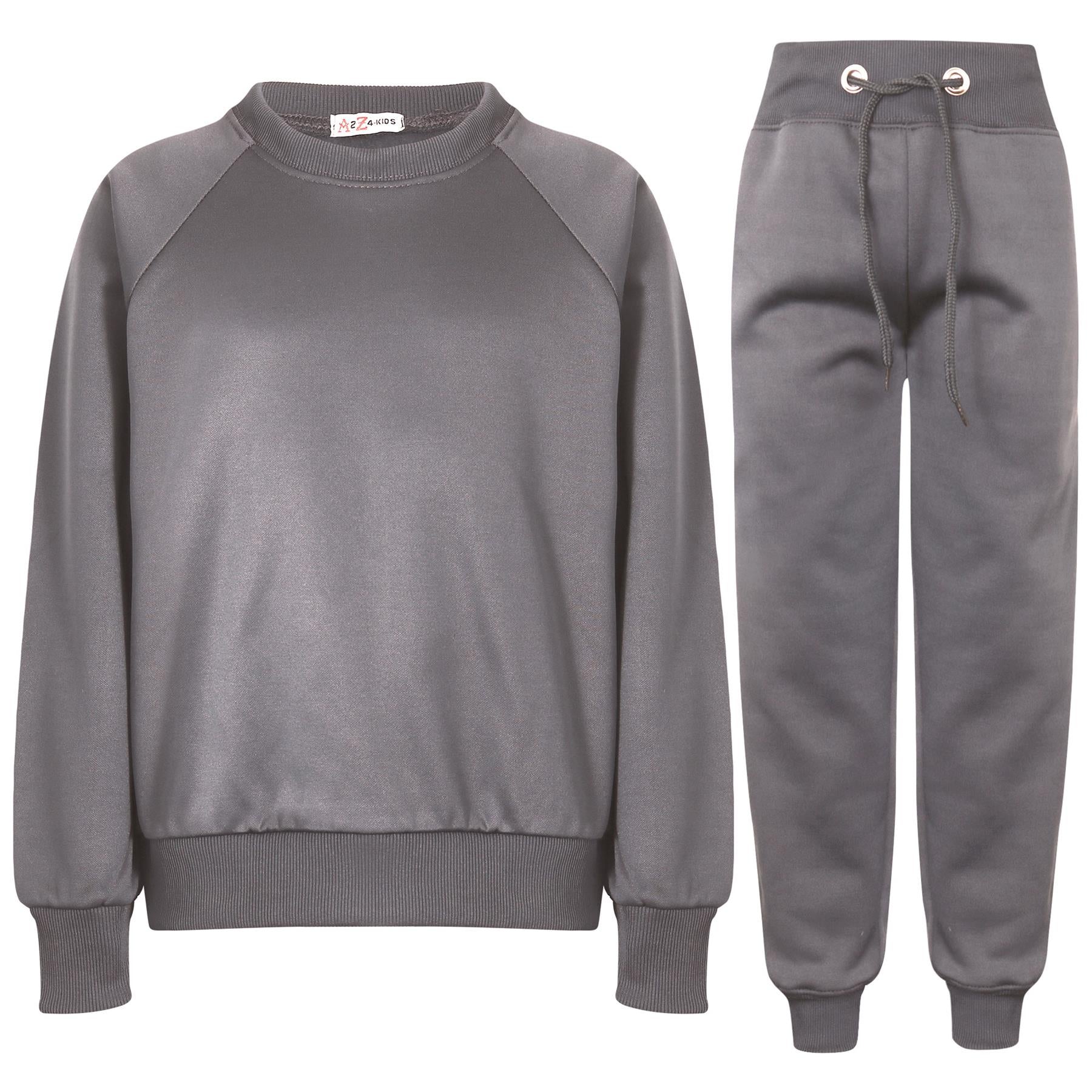 A2Z 4 Kids Girls Boys Unisex Plain Steel Grey Color Raglan Sleeves Fleece Tracksuit Jumper Sweatshirts & Bottom Jogging Suit Joggers Age 5 6 7 8 9 10 11 12 13 Years