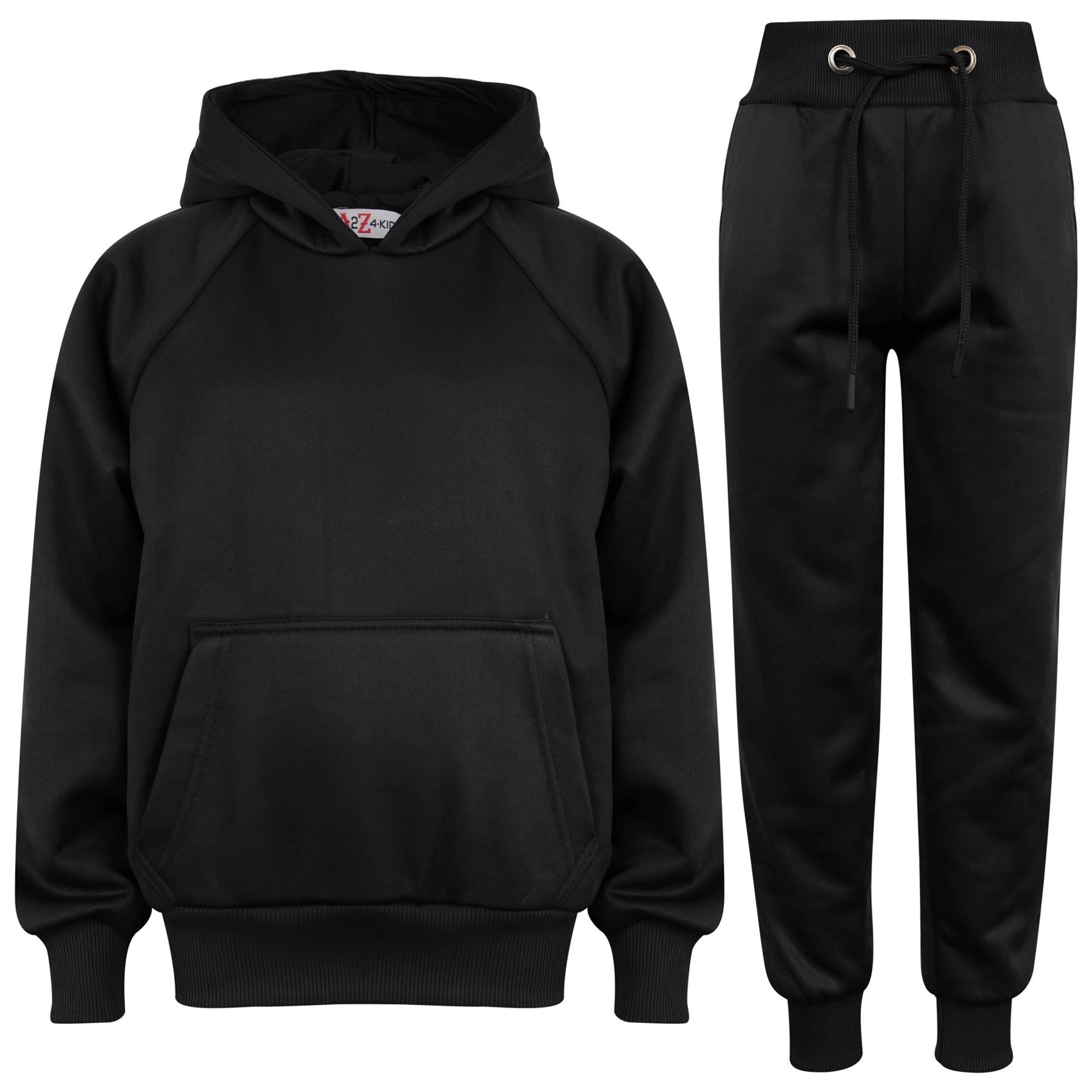 A2Z 4 Kids Girls Boys Unisex Plain Tracksuit Black Hooded Sweat Hoodie & Bottom Gymwear Jogging Suit Joggers Age 5 6 7 8 9 10 11 12 13 Years
