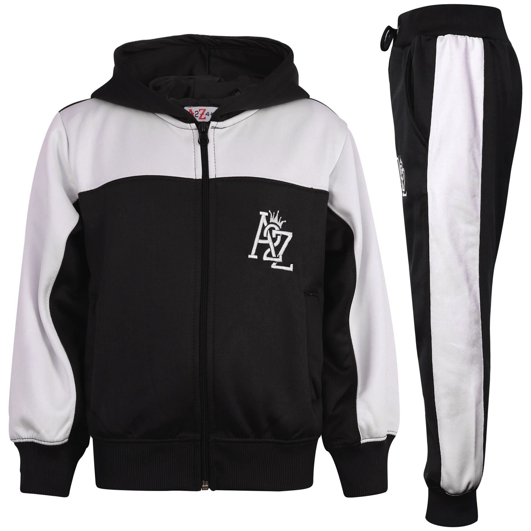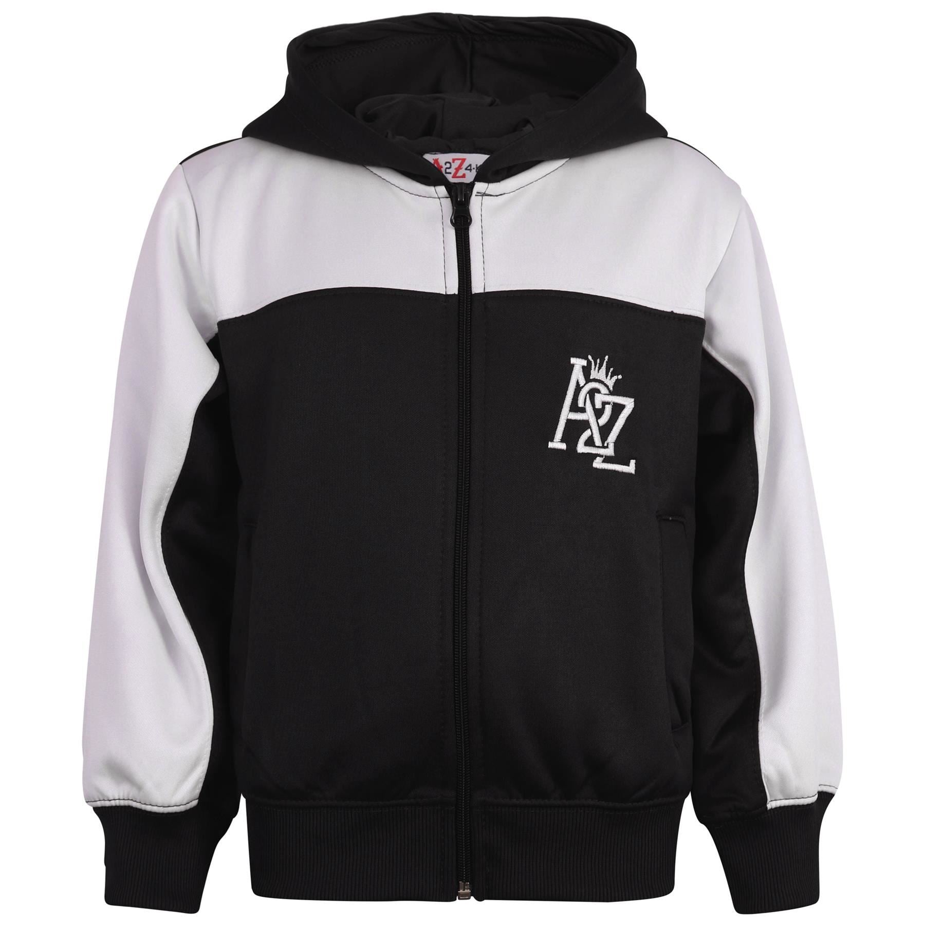 A2Z 4 Kids Girls Boys Unisex Tracksuit A2Z Embroidered Contrast Panelled Black Fleece Hooded Hoodie Top Bottom School PE Jogging Suit Joggers