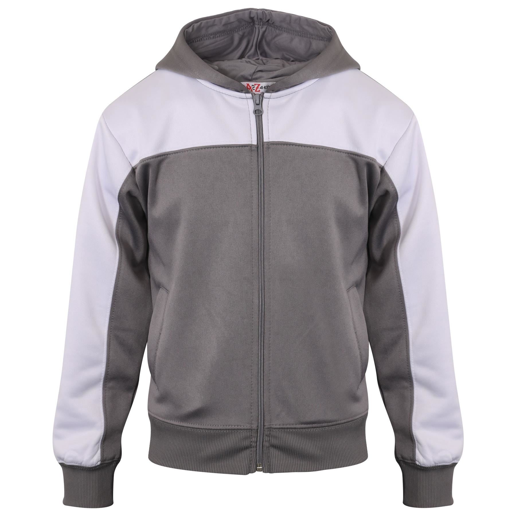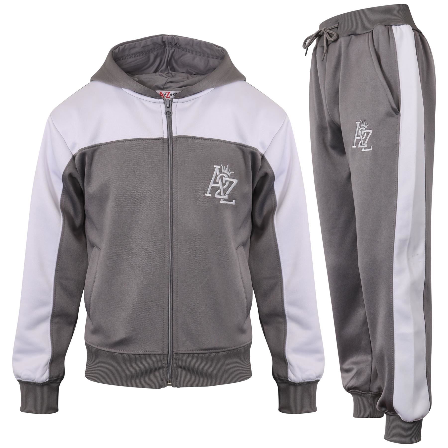 A2Z 4 Kids Girls Boys Unisex Tracksuit A2Z Embroidered Contrast Panelled Steel Grey Fleece Hooded Hoodie Top Bottom School PE Jogging Suit Joggers