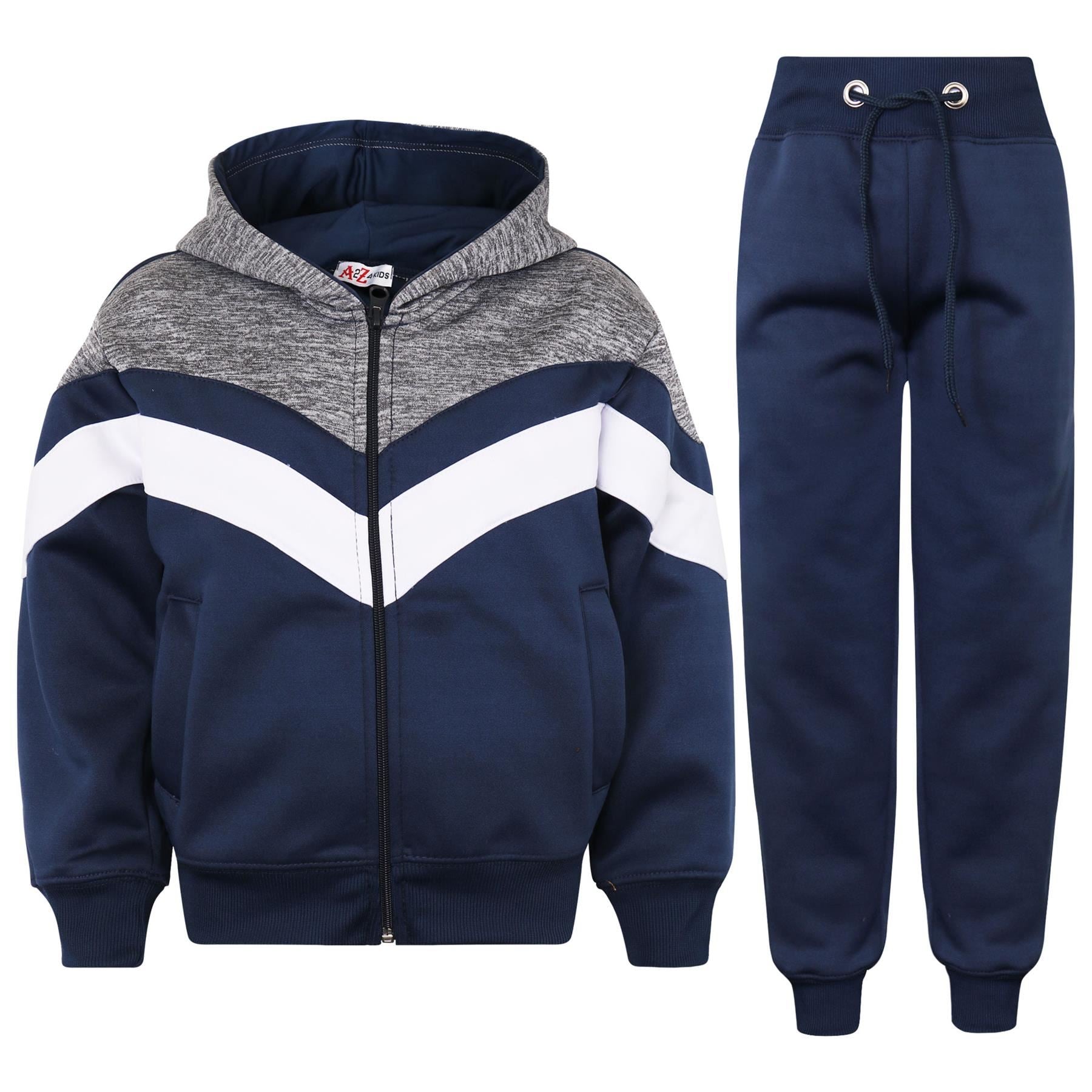 A2Z 4 Kids Girls Boys Unisex Tracksuit Designer's Contrast Panelled Fleece Navy Hooded Zip Up Hoodie & Trouser Gym Wear Jogging Suit Joggers Age 5 6 7 8 9 10 11 12 13 Years