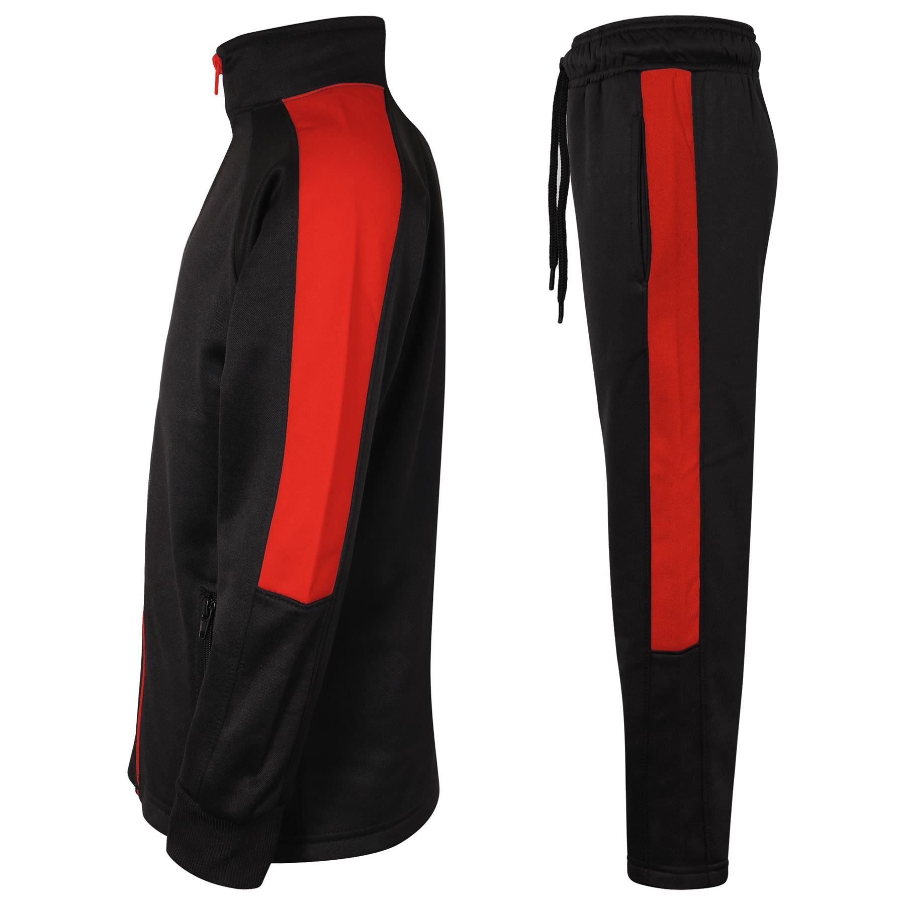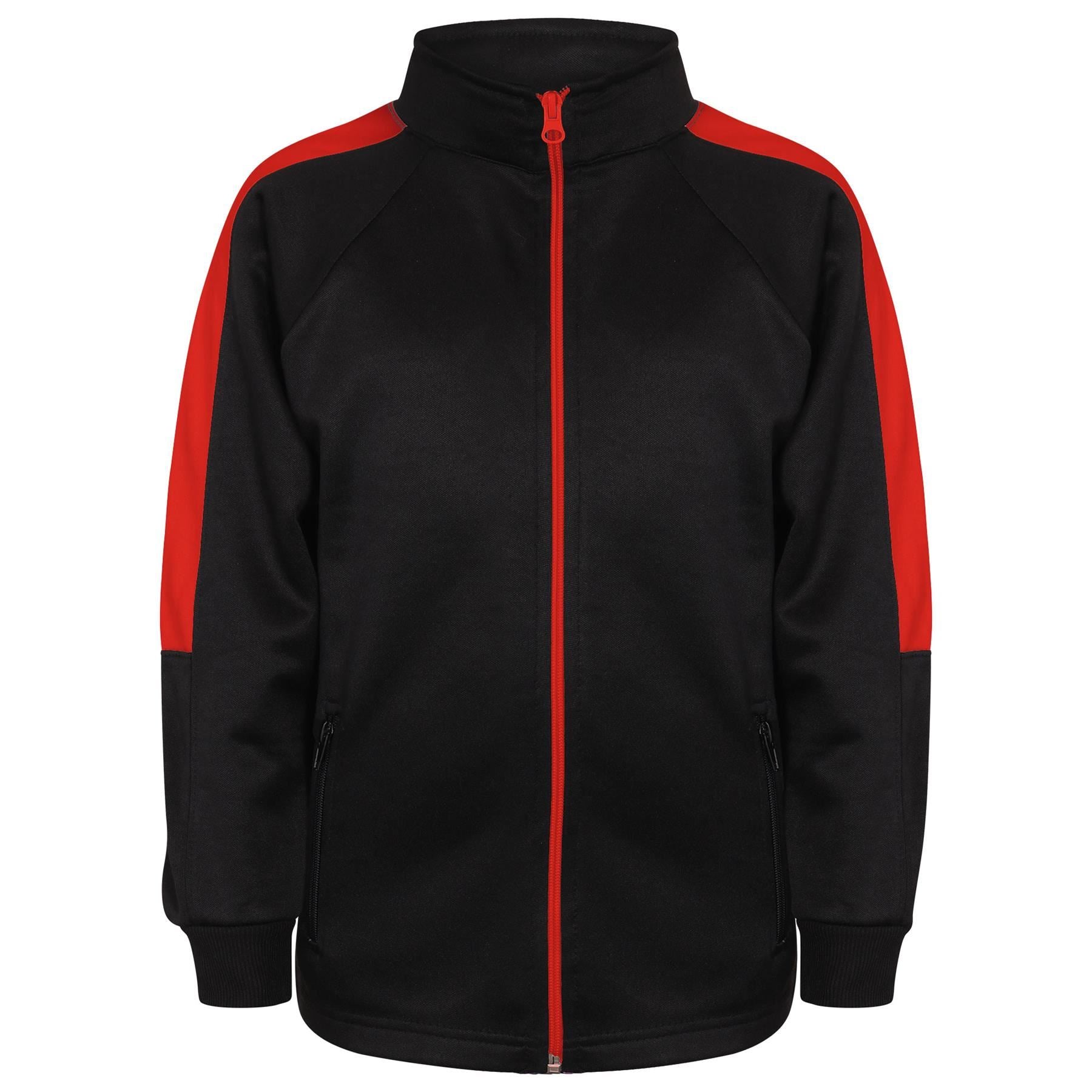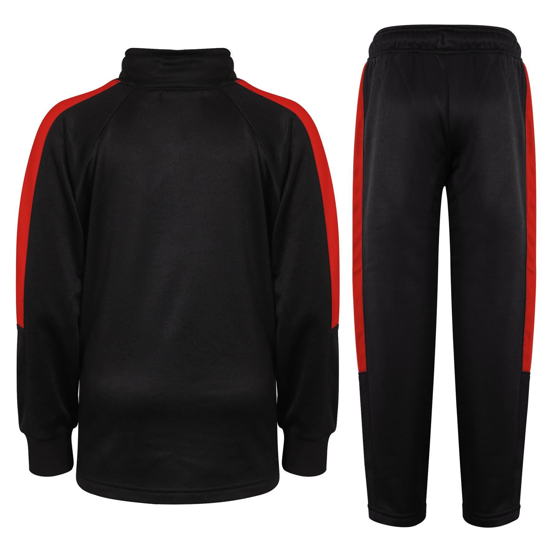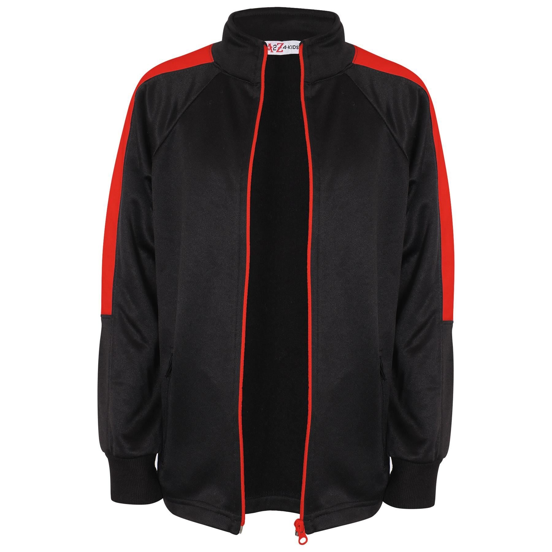 A2Z 4 Kids Girls Boys Unisex Tracksuit Red Contrast Panelled Fleece School PE Kit Zip Up Top Jogging Bottoms & Hoodie Set Age 2-13 Years