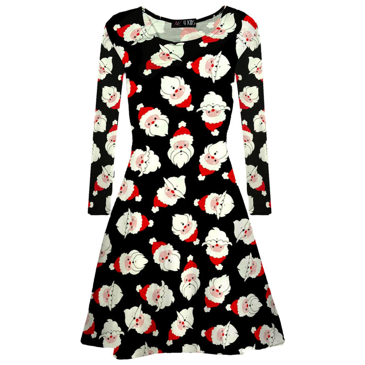 A2Z 4 Kids Girls Christmas Dress Santa Funny Faces Printed Xmas Festive Gifts & Party Fashion Dresses With Free Badge New Age 1 2 3 4 5 6 7 8 9 10 11 12 13 Years