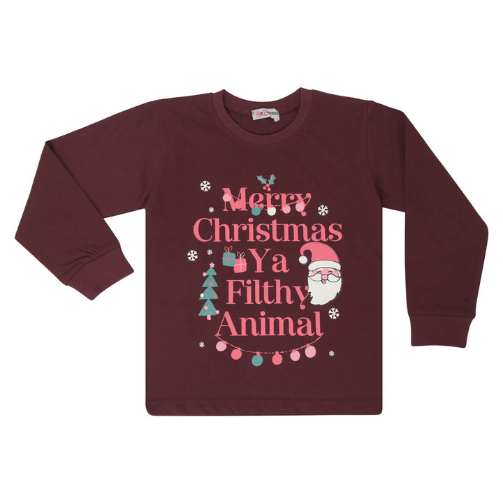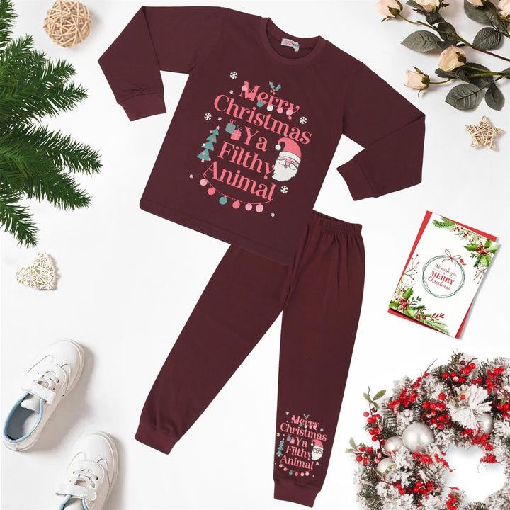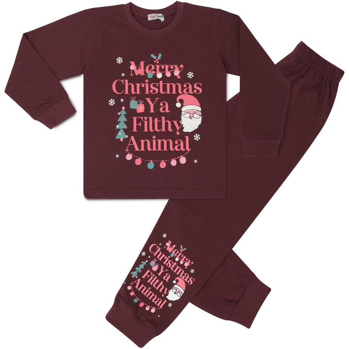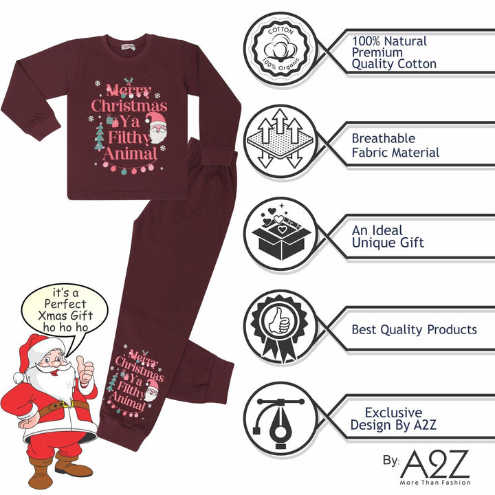 A2Z 4 Kids Girls Christmas Pyjamas Children PJs 2 Piece Festive Set Ya Filthy Animal Santa Print Wine Lounge Suit for Children Unisex Top Bottom Pyjamas Loungewear Gifts Age 2-13 Years