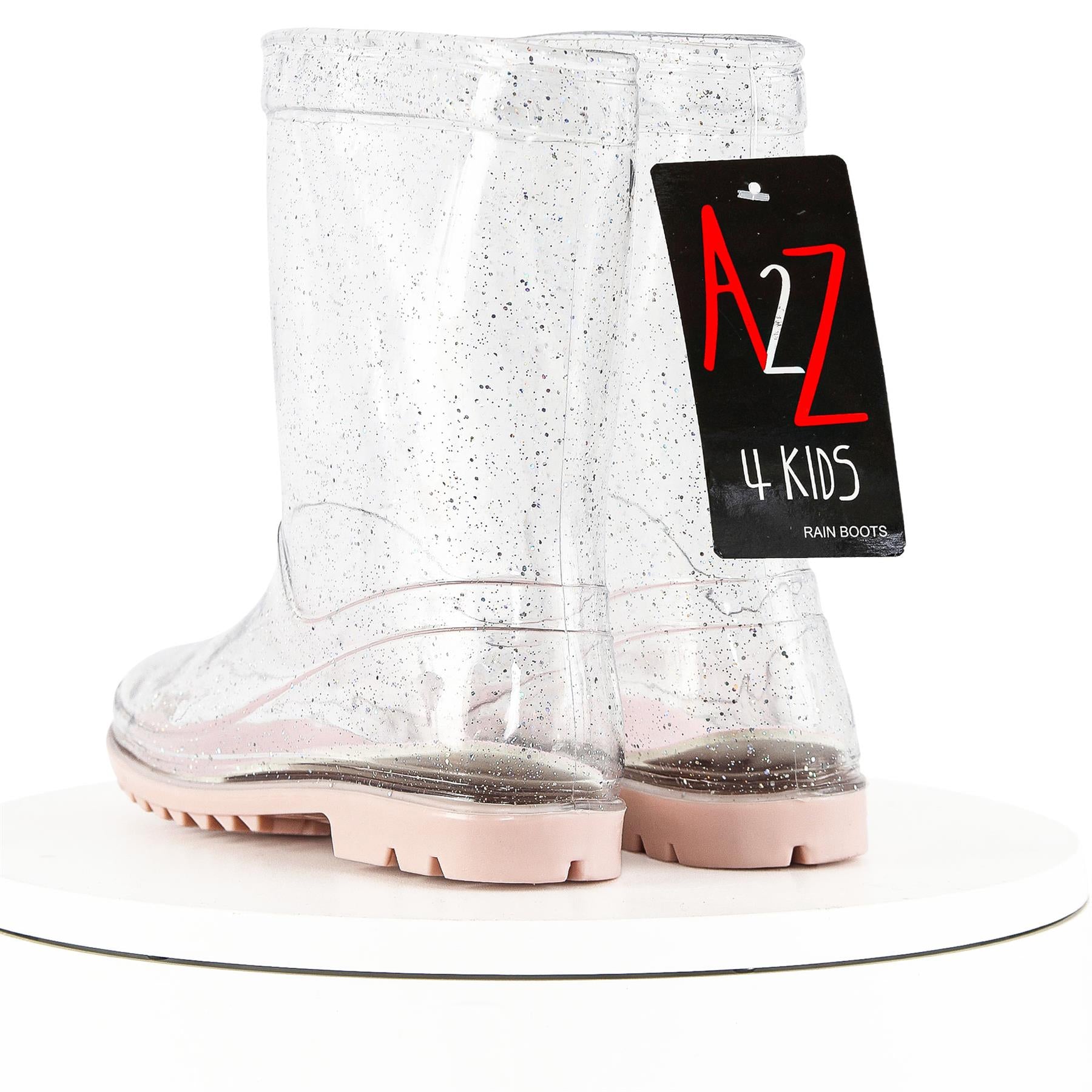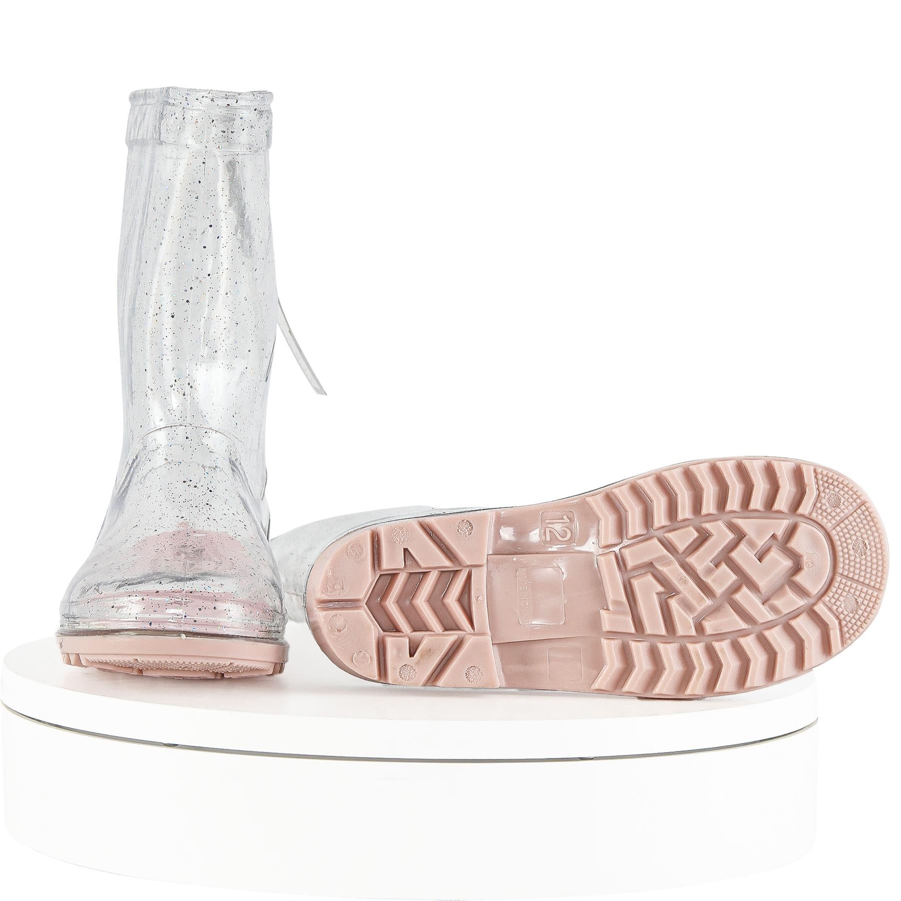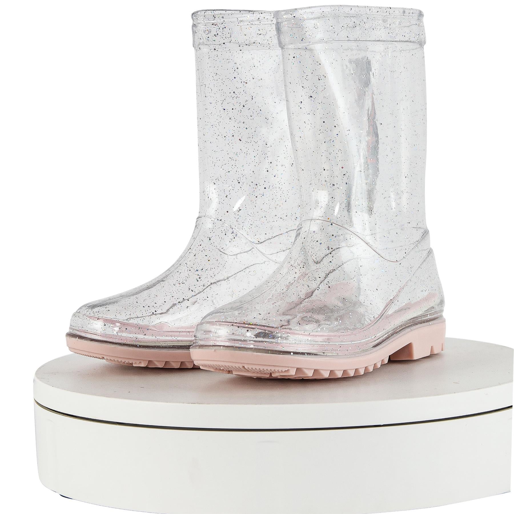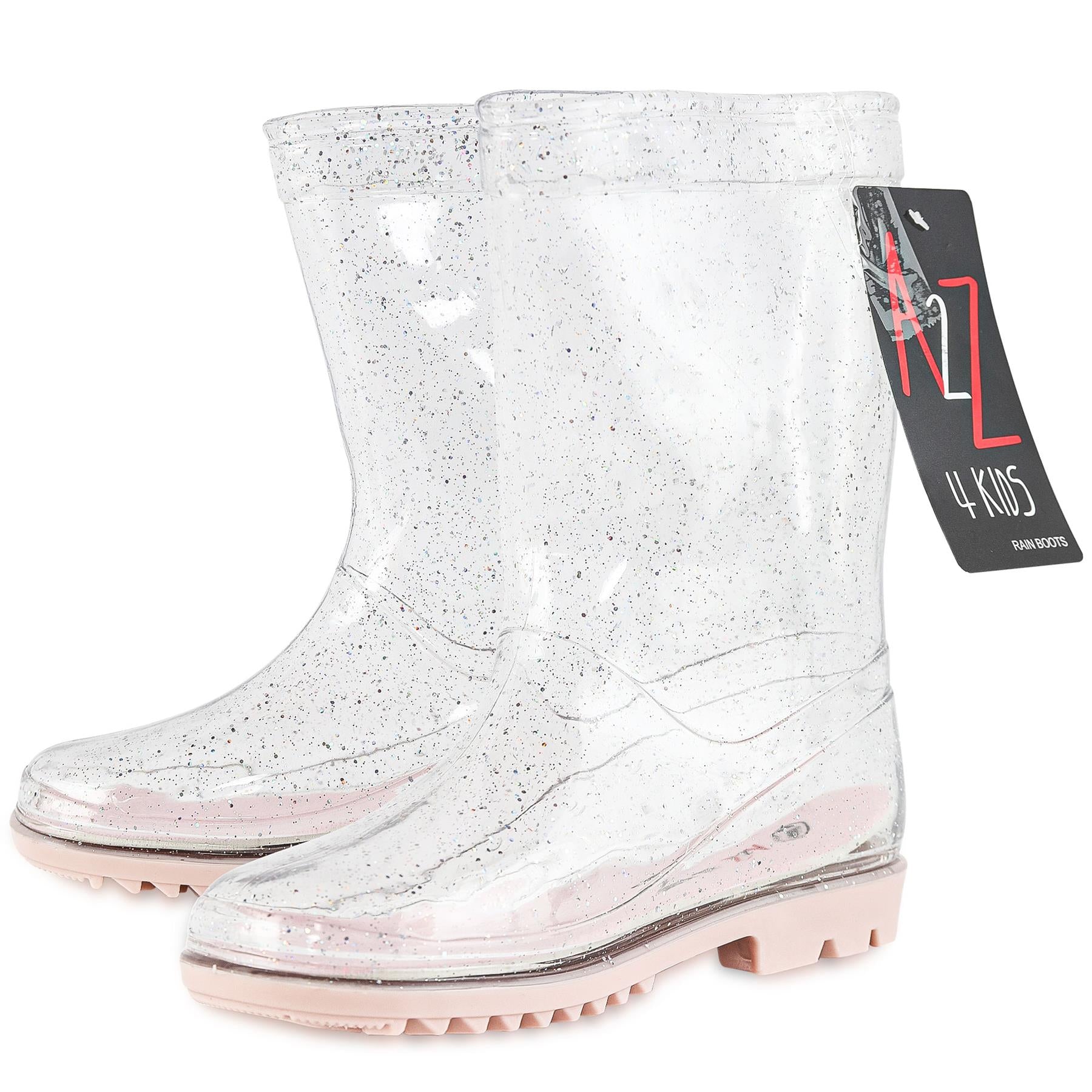 Toddlers Girls Wellies Crystal Clear Pink Glitter Waterproof Lightweight PVC