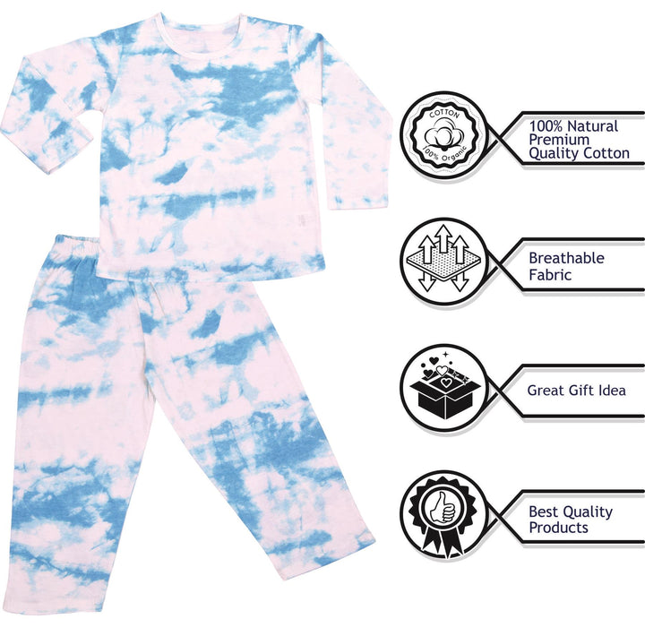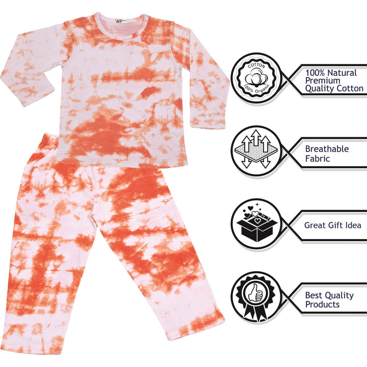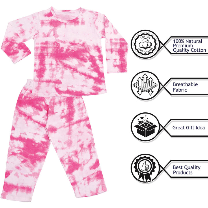COMFORT: Children long pyjamas thickness is moderate, suitable for spring, autumn, winter festival, breathable comfortable all the way, let your child have a comfortable sleep at night. LOUNGE AROUND THE HOUSE: Perfect lazy days clothes for kids, these PJs are perfect to wear and relax in at home. With a great looking splash design and a super comfy cotton material, your kids will not want to take them off! Pair them with our fantastic range of fun bathrobes to create the full ensemble, check out our other listings. This cool two-piece pyjamas set is not to be missed! We use a soft and breathable fabric that is gentle on the skin. HIGH-QUALITY PJS: This beautiful lounge set is manufactured using high quality materials and are extremely comfy, flexible, and lightweight! The trousers have an elasticated waist with a draw cord. They are made from 100% cotton, great for playing, relaxing, or dressing up, perfect for everyday use in summer or winter. All our PJs for kids are available in a selection of sizes from 2-13 years. Check our sizing chart for the best fit. They make perfect attire for sleepovers or for a pyjama party. AVAILABLE SIZE: 2-3 Years, 3-4 Years, 5-6 Years, 7-8 Years, 9-10 Years, 11-12 Years, & 13 Years. AVAILABLE COLOR: Tie Dye Blue, Tie Dye Orange & Tie Dye Pink. GREAT GIFT IDEA: Looking for a gift for your loved ones? This pyjama set would make a perfect gift for girls from age 2 to 13 years.