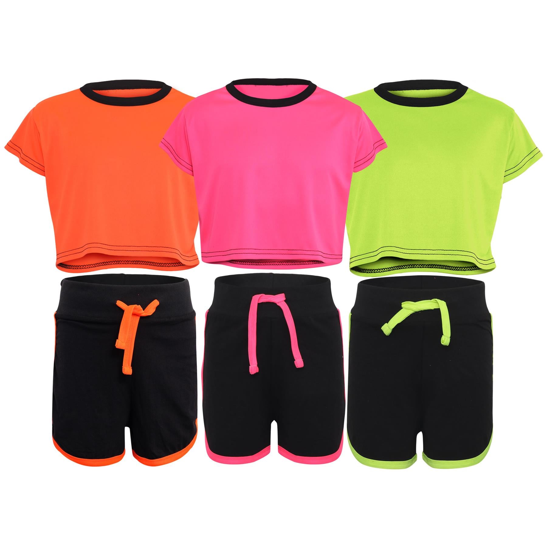 A2Z 4 Kids Girls Crop Top Shorts Set Contrast Colour Short Sleeves T Shirt Sets