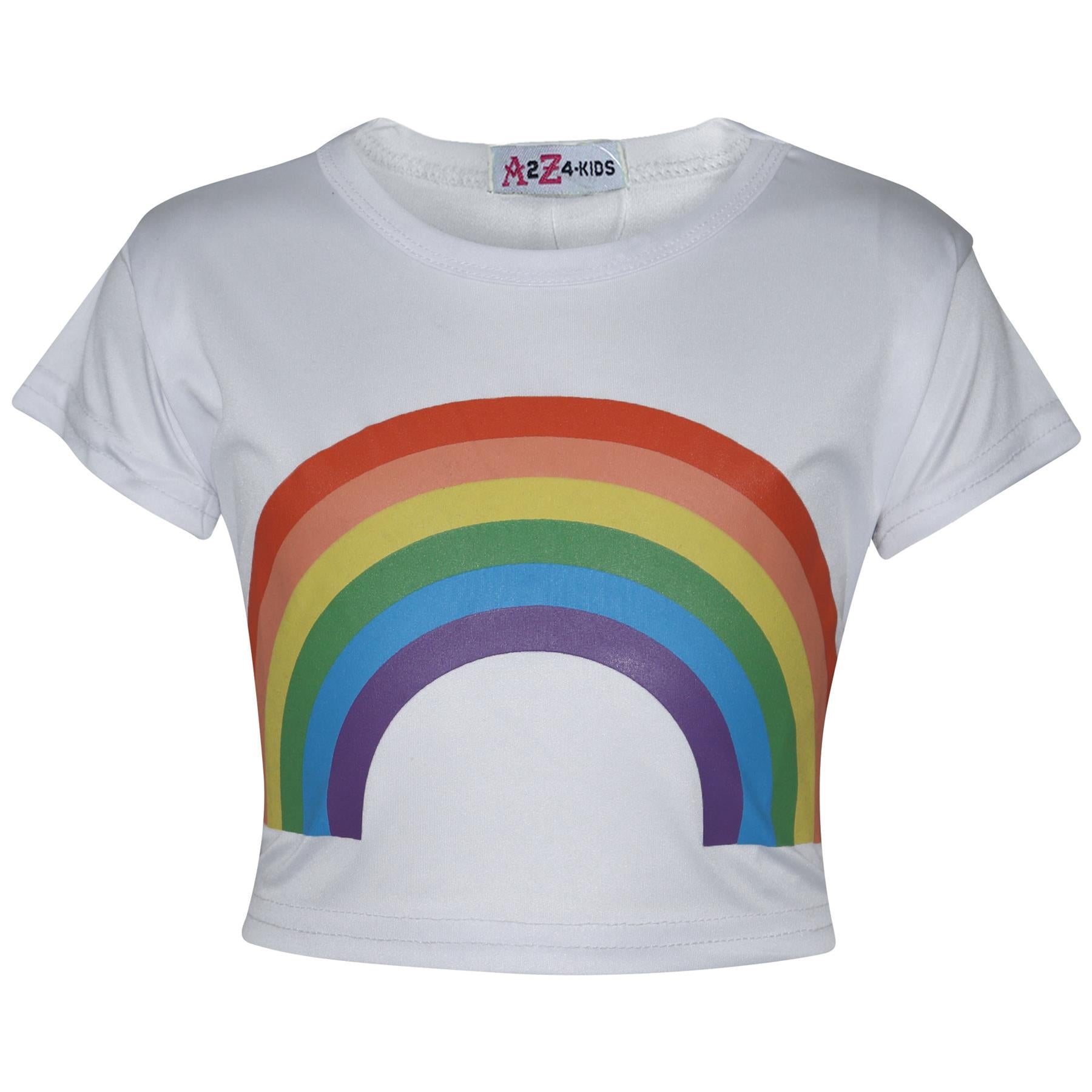 A2Z 4 Kids Girls Crop Tops Rainbow Print White Stylish Fahsion Trendy T Shirt Tank Top & Tees New Age 5 6 7 8 9 10 11 12 13 Years