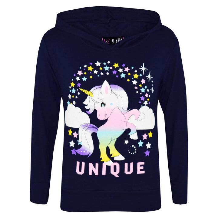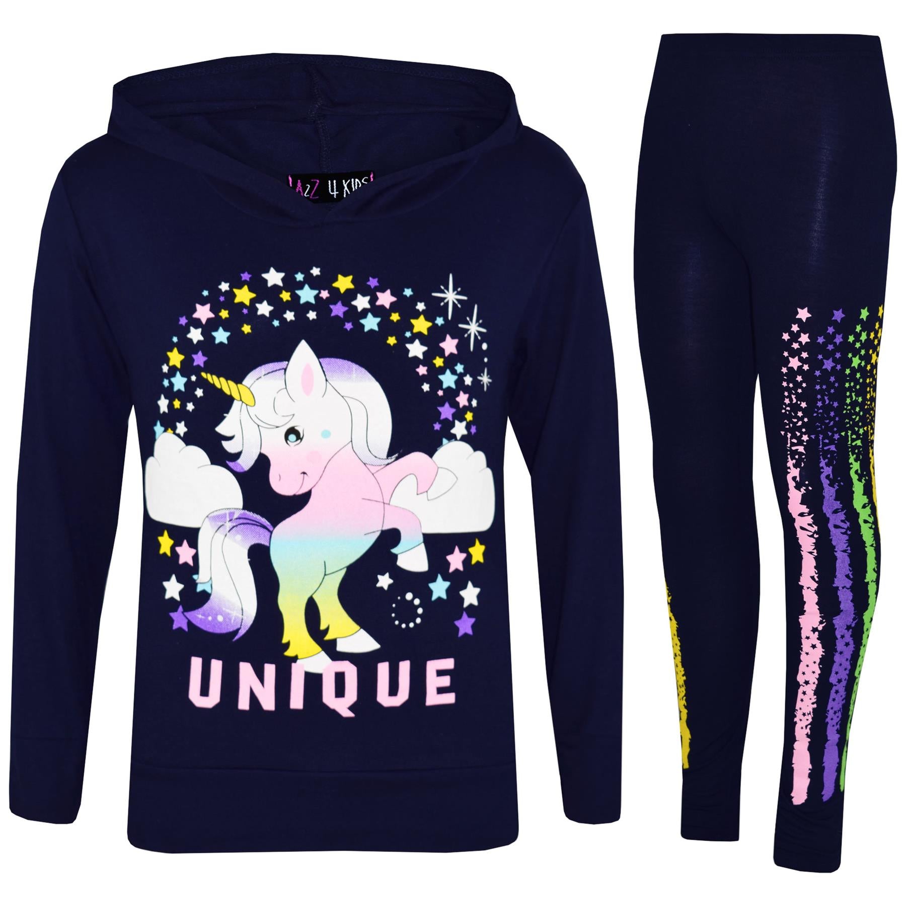 A2Z 4 Kids Girls Dabbing Unicorn Unique Tracksuit Kids Designer's Rainbow Floss Hooded Navy Top & Legging Lounge Wear New Age 7 8 9 10 11 12 13 Years