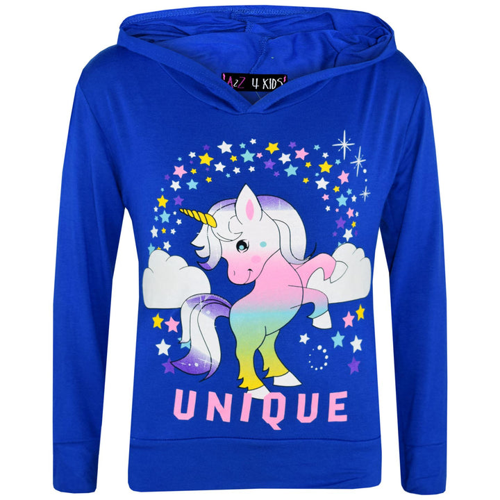A2Z 4 Kids Girls Dabbing Unicorn Unique Tracksuit Kids Designer's Rainbow Floss Hooded Royal Blue Top & Legging Lounge Wear New Age 7 8 9 10 11 12 13 Years