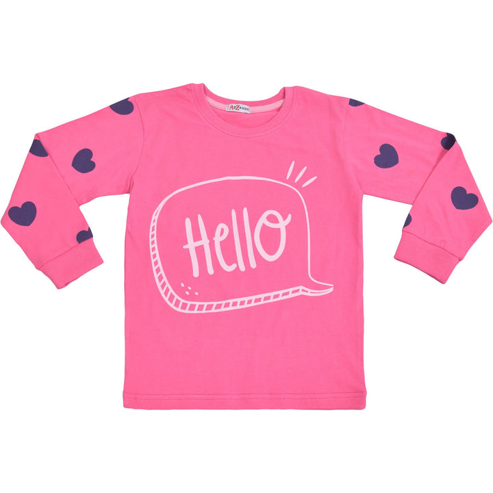 A2Z 4 Kids Girls Hello Print Pyjamas PJs 2 Piece Pink Cotton Set Lounge Suit for Unisex Top Bottom Pyjamas Hello Loungewear Dress Up Outfit Set Gifts for Children & Girls 2-13 Years