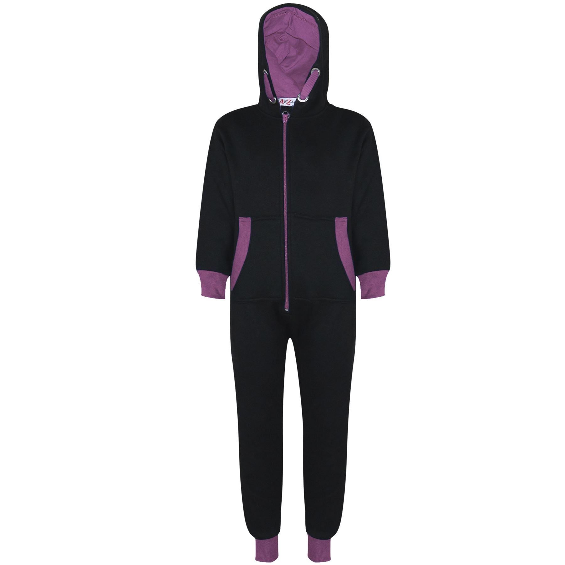 A2Z 4 Kids Girls Lilac Contrast Fleece Onesie All In One Jumsuit Playsuit Nightwear New Age 2 3 4 5 6 7 8 9 10 11 12._13 Years