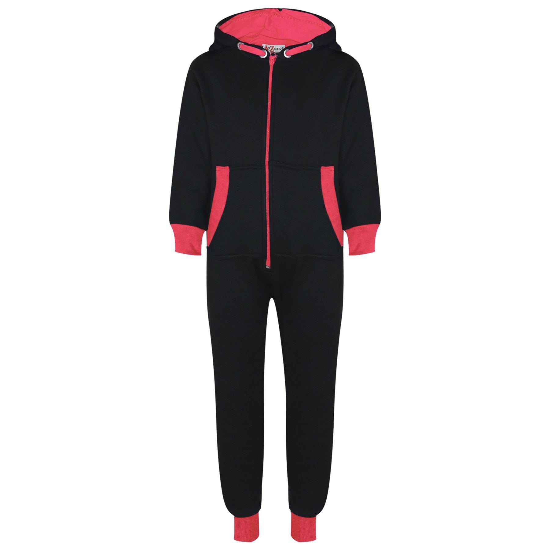 A2Z 4 Kids Girls Neon Pink Contrast Fleece Onesie All In One Jumsuit Playsuit Nightwear New Age 2 3 4 5 6 7 8 9 10 11 12._13 Years