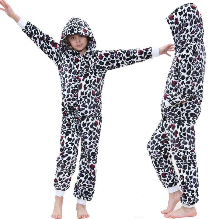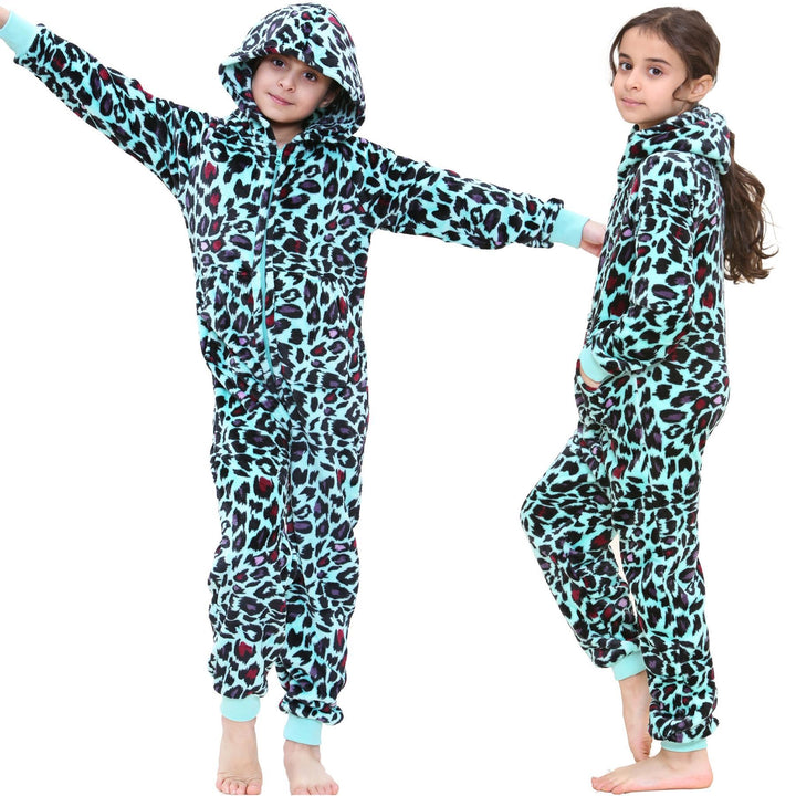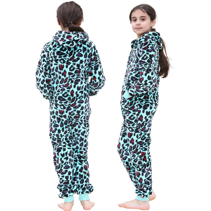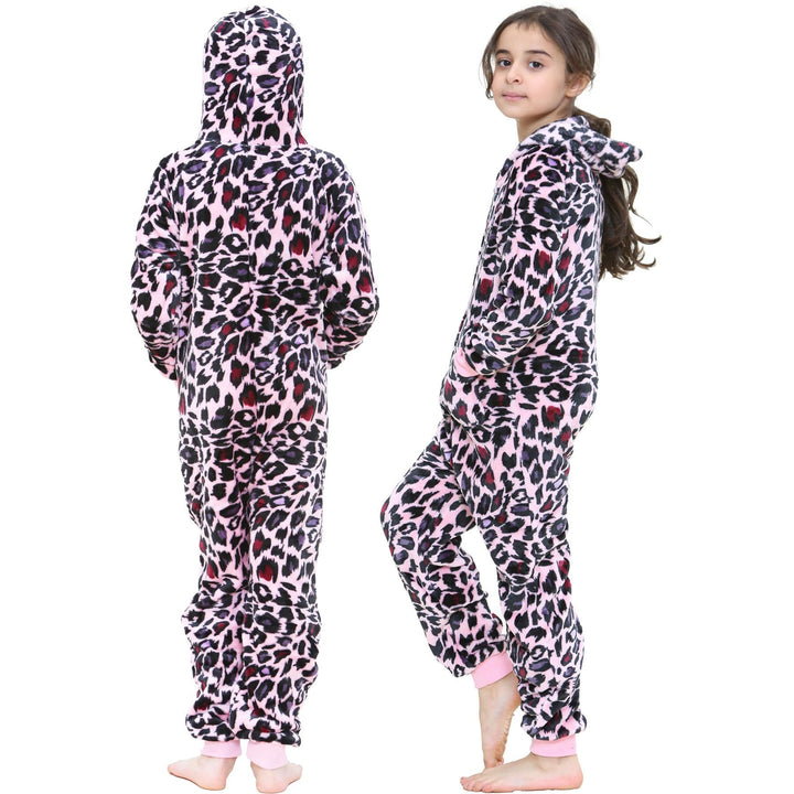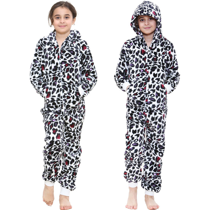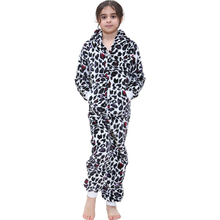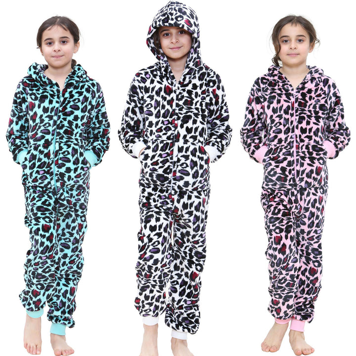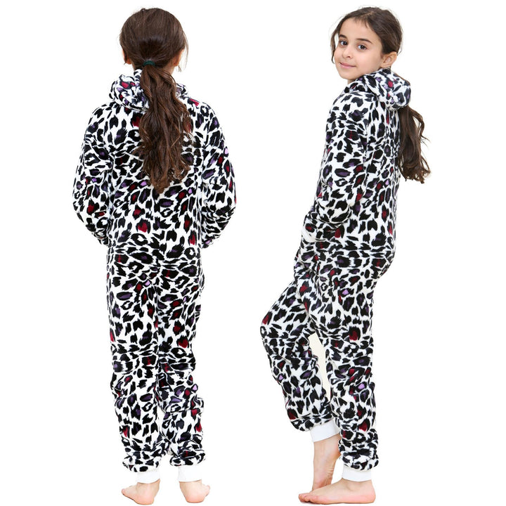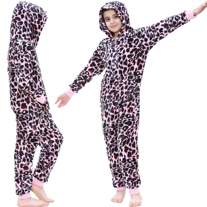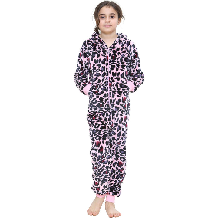 A2Z 4 Kids Girls Onesie Leopard Pyjama Sets Onesie One Piece Hooded All In One