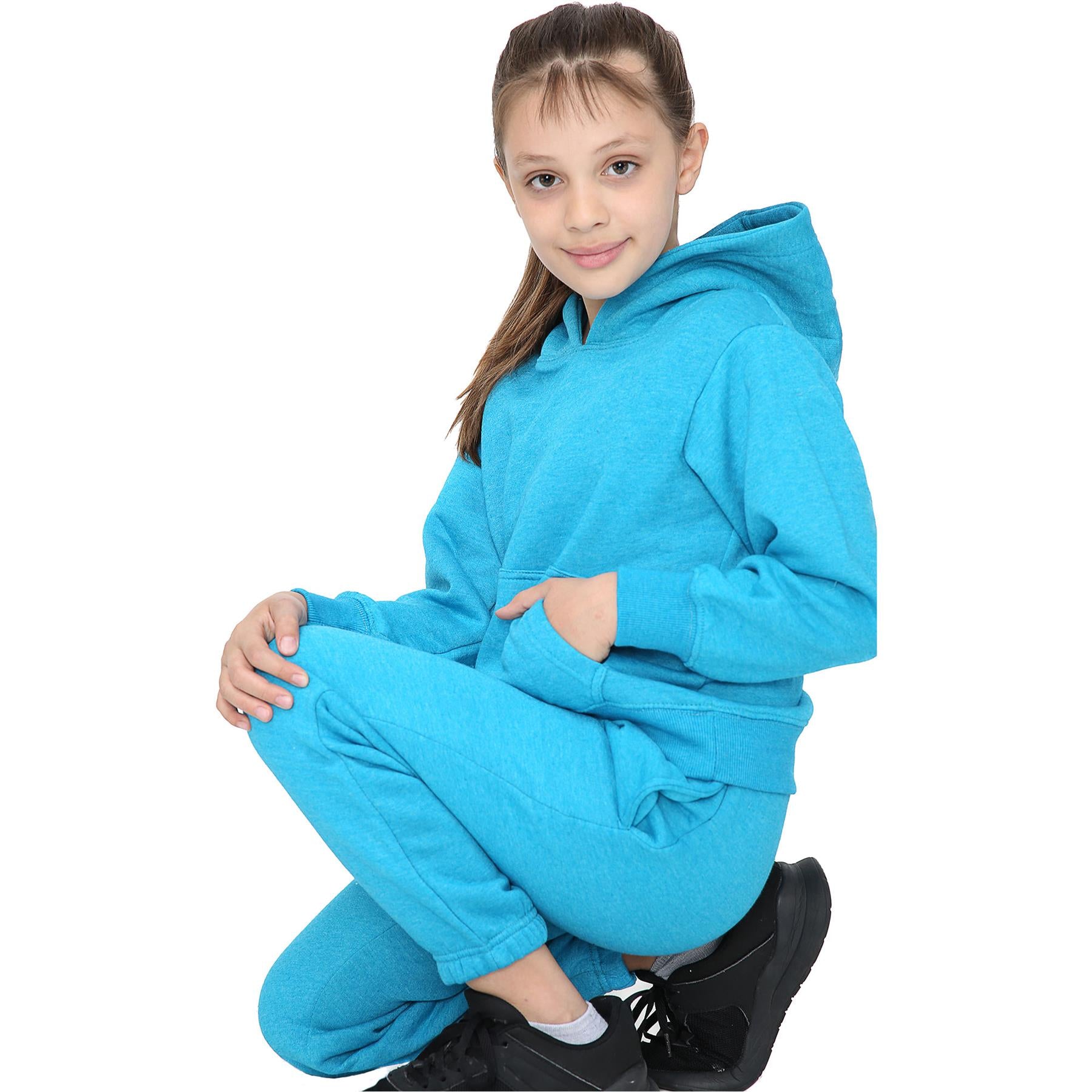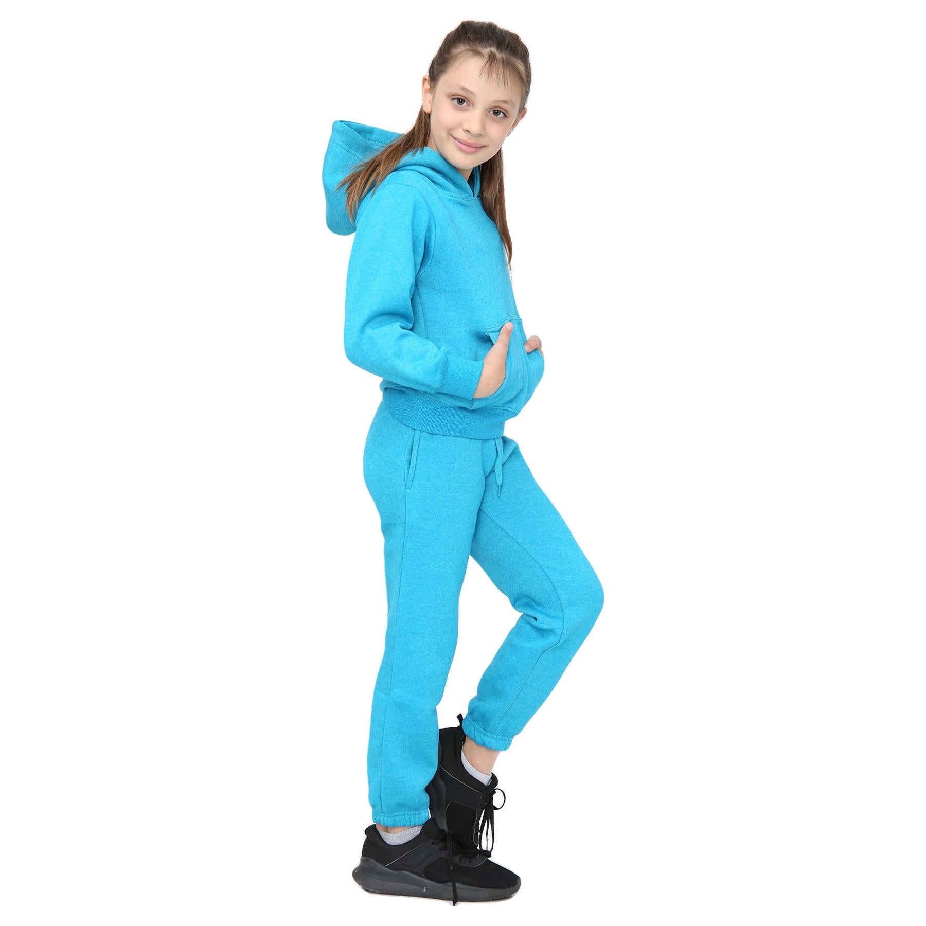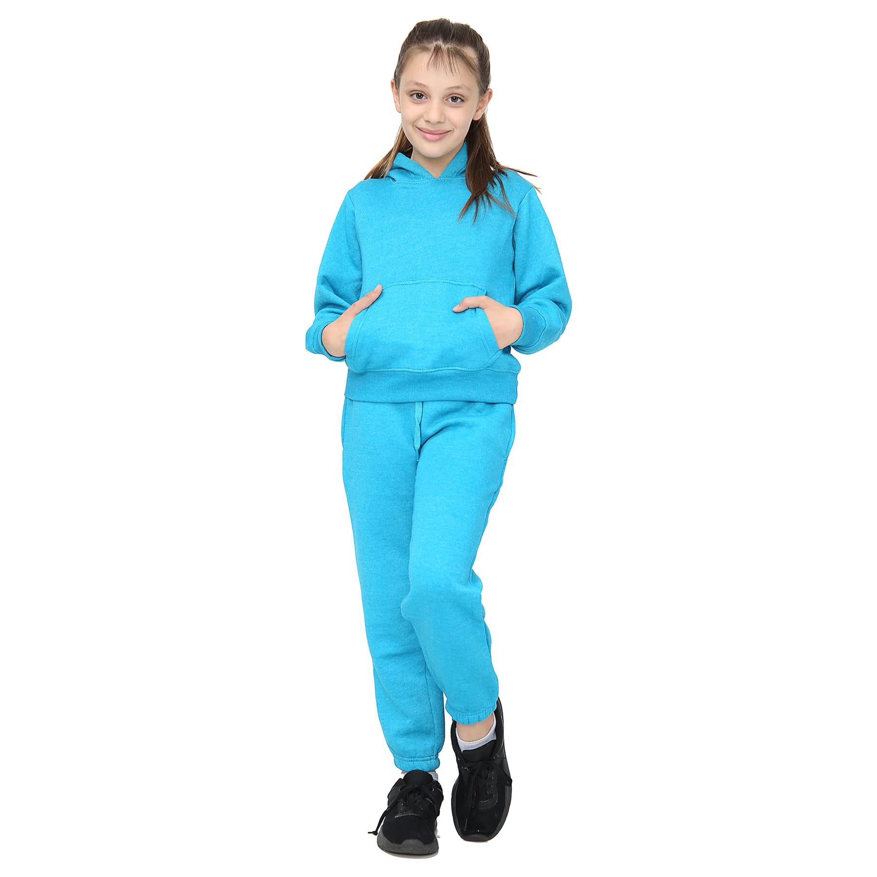 A2Z 4 Kids Girls Plain Aqua Tracksuit Hooded Sweat Hoodie & Bottom Jog Suit Joggers Age 5 6 7 8 9 10 11 12 13 Years