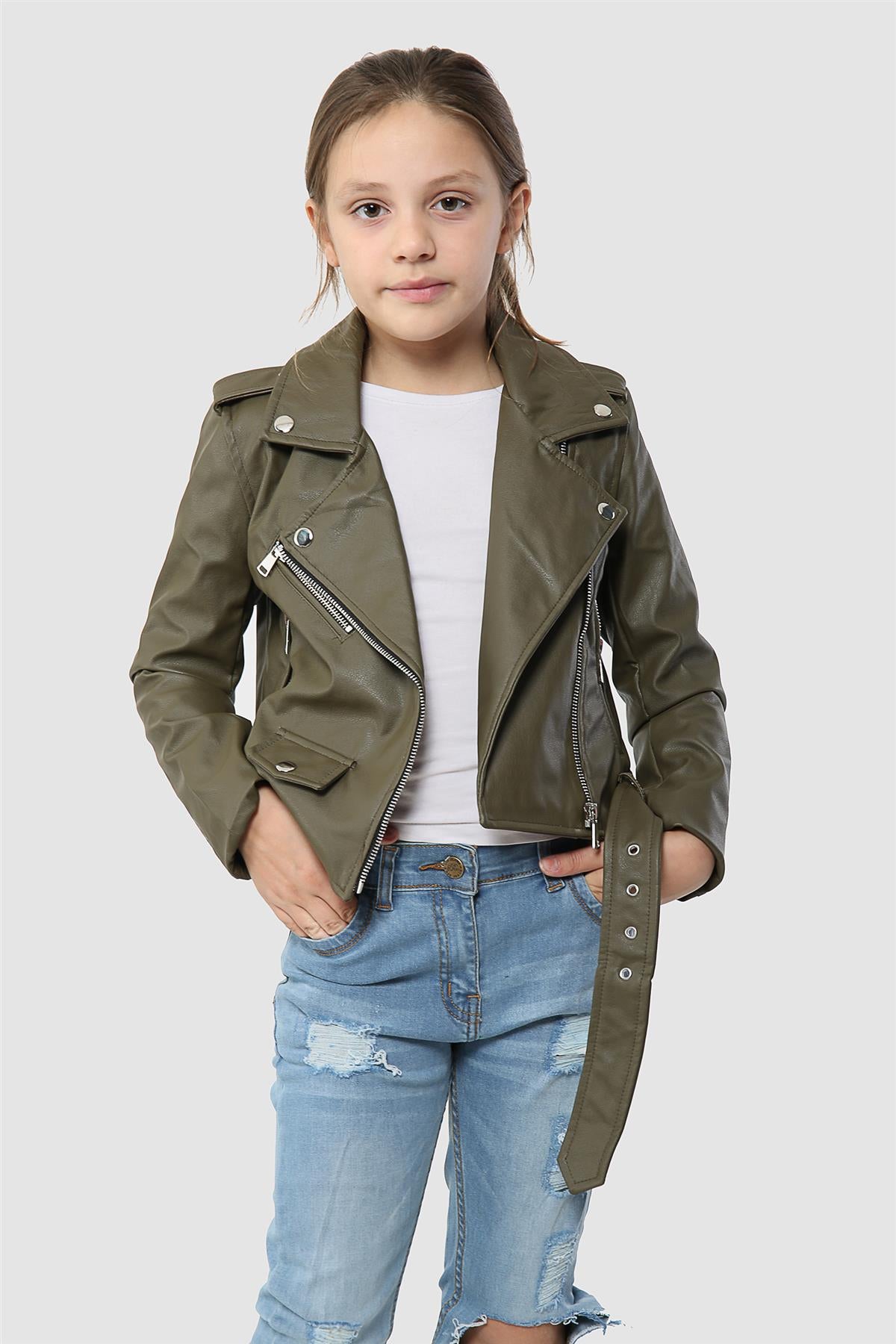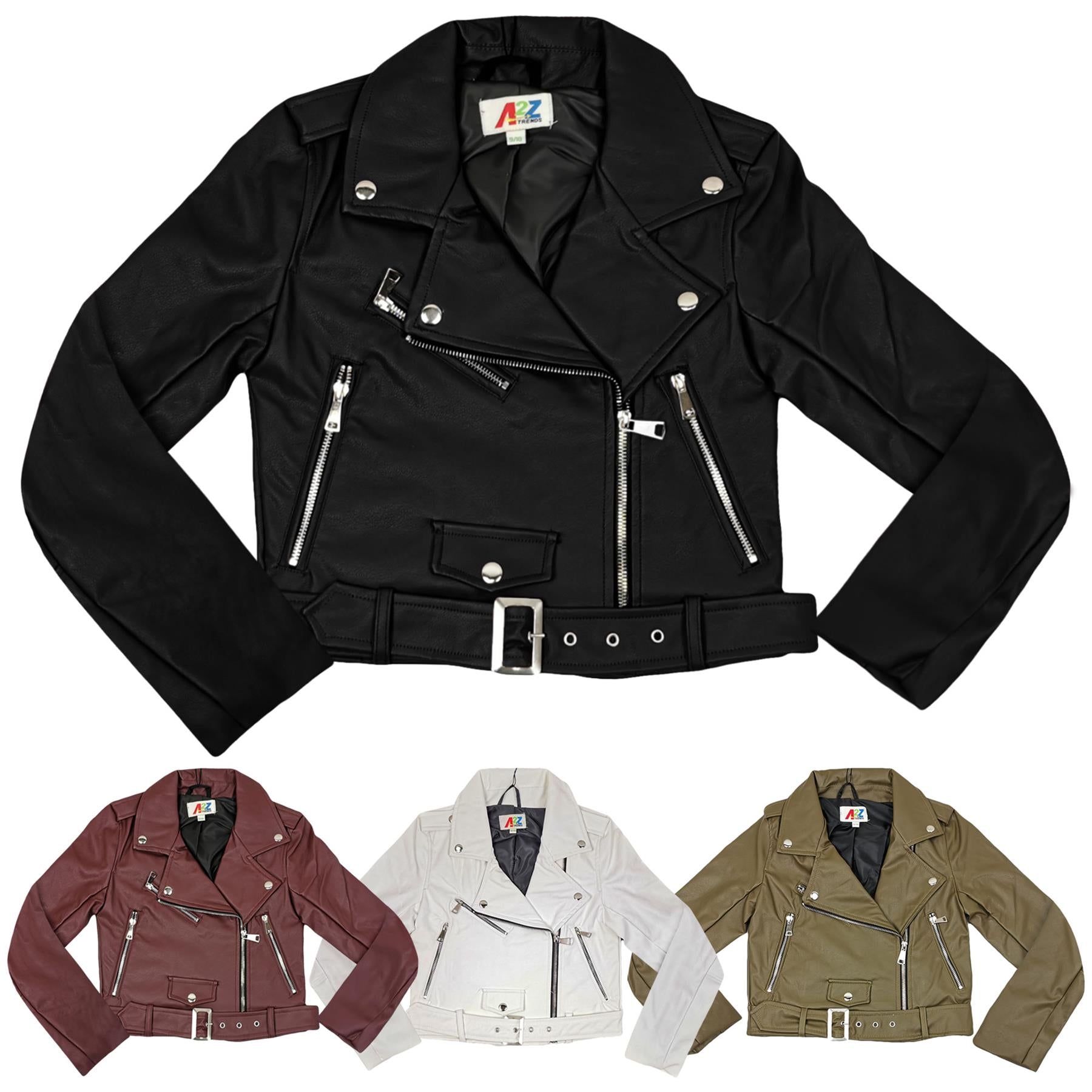 A2Z 4 Kids Girls PU Leather Jacket Zip Up Biker Trendy Belted Coats 5-13 Years