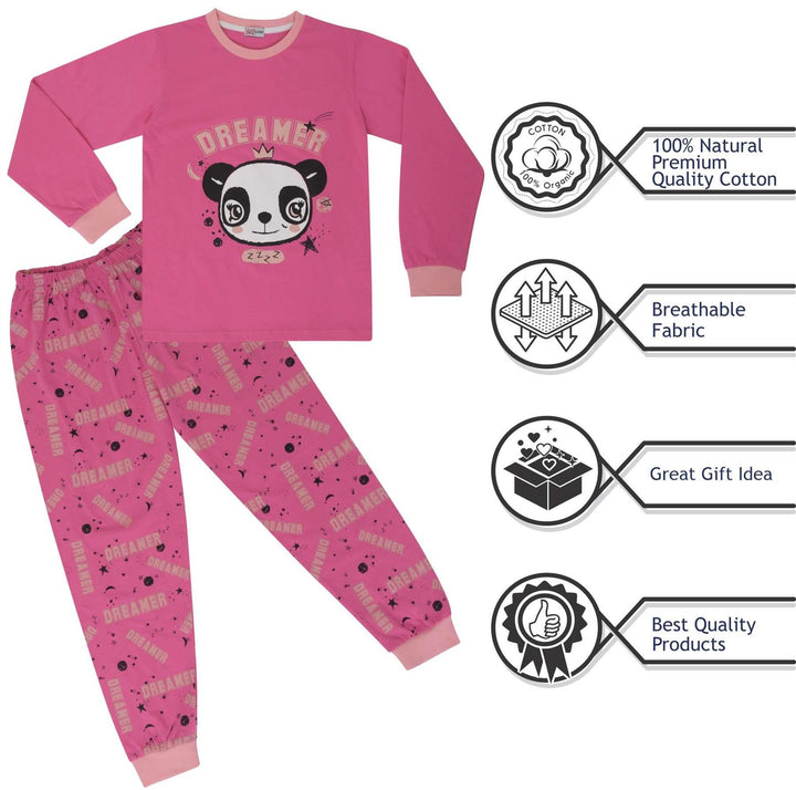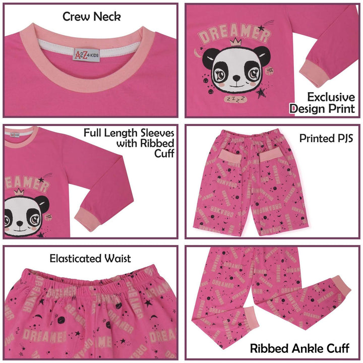 A2Z 4 Kids Girls Pyjamas Children PJs 2 Piece Set Panda Animal Dreamer Print Pink Lounge Suit for Children Top Bottom Pyjamas Loungewear Gifts Age 2-3, 3-4, 5-6, 7-8, 9-10, 11-12 & 13 Years