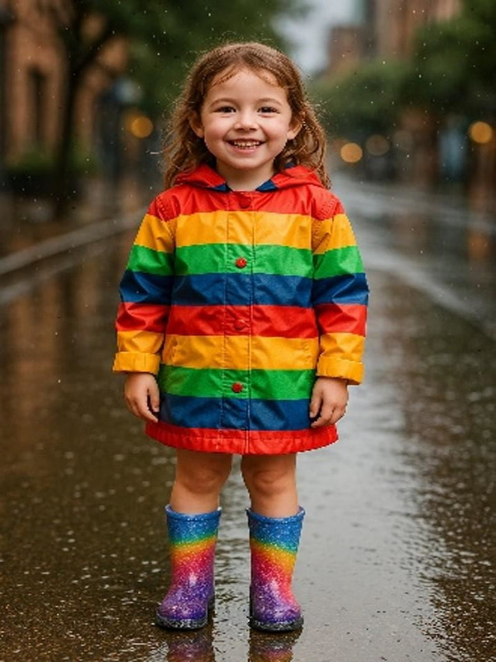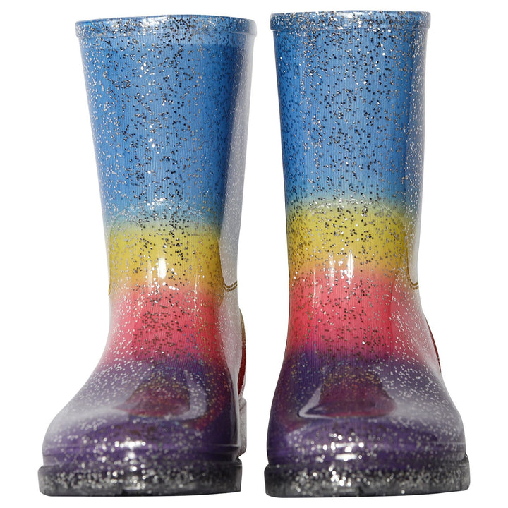These rain boots are a magical blend of sparkle and style. Designed with a vibrant rainbow gradient in blue, yellow, red, and purple, and finished with all-over glitter, these boots add a pop of fun to rainy days. Perfect for girls who love colours and shine, they are sure to be a favourite in any wardrobe.