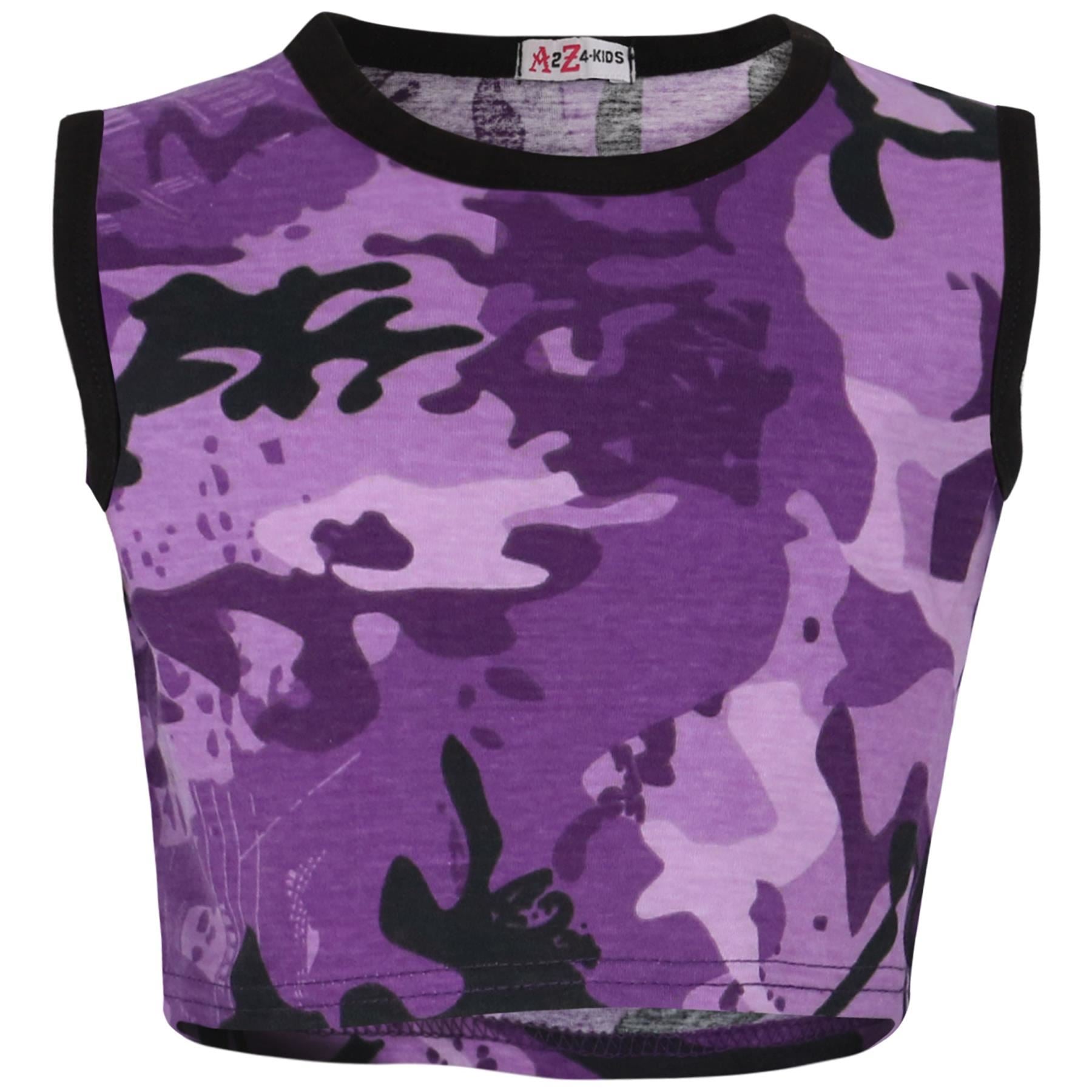 A2Z 4 Kids Girls Shorts Set 100% Cotton Contrast Taped Trendy Fashion Summer Camouflage Purple T Shirt Top and Hot Short Pants Outfit Set New Age 5 6 7 8 9 10 11 12 13 Years