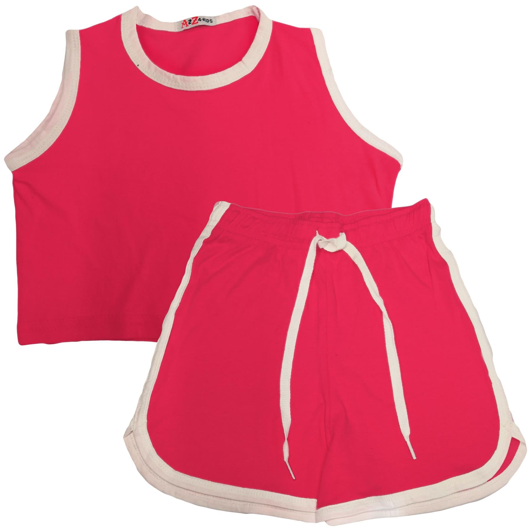 A2Z 4 Kids Girls Shorts Set 100% Cotton Contrast Taped Trendy Fashion Summer Pink T Shirt Top and Hot Short Pants Outfit Set New Age 5 6 7 8 9 10 11 12 13 Years