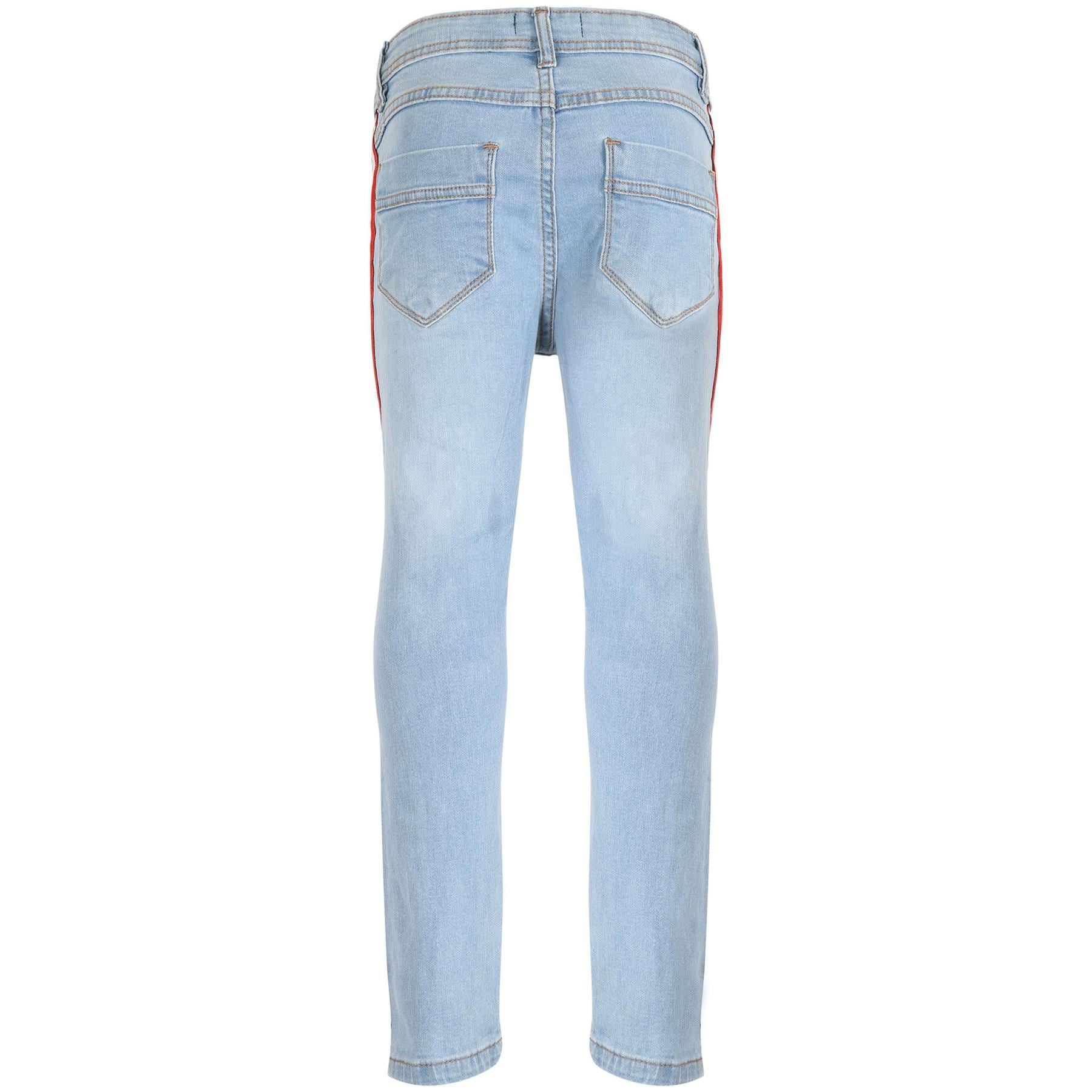 These elegant full-length jeans feature two practical side pockets, two functional back pockets, a coin pocket, and belt loops. The ripped jeans are tastefully adorned with stylish elements that set them apart from ordinary denim, making them a versatile and sophisticated addition to your daughter's wardrobe. -