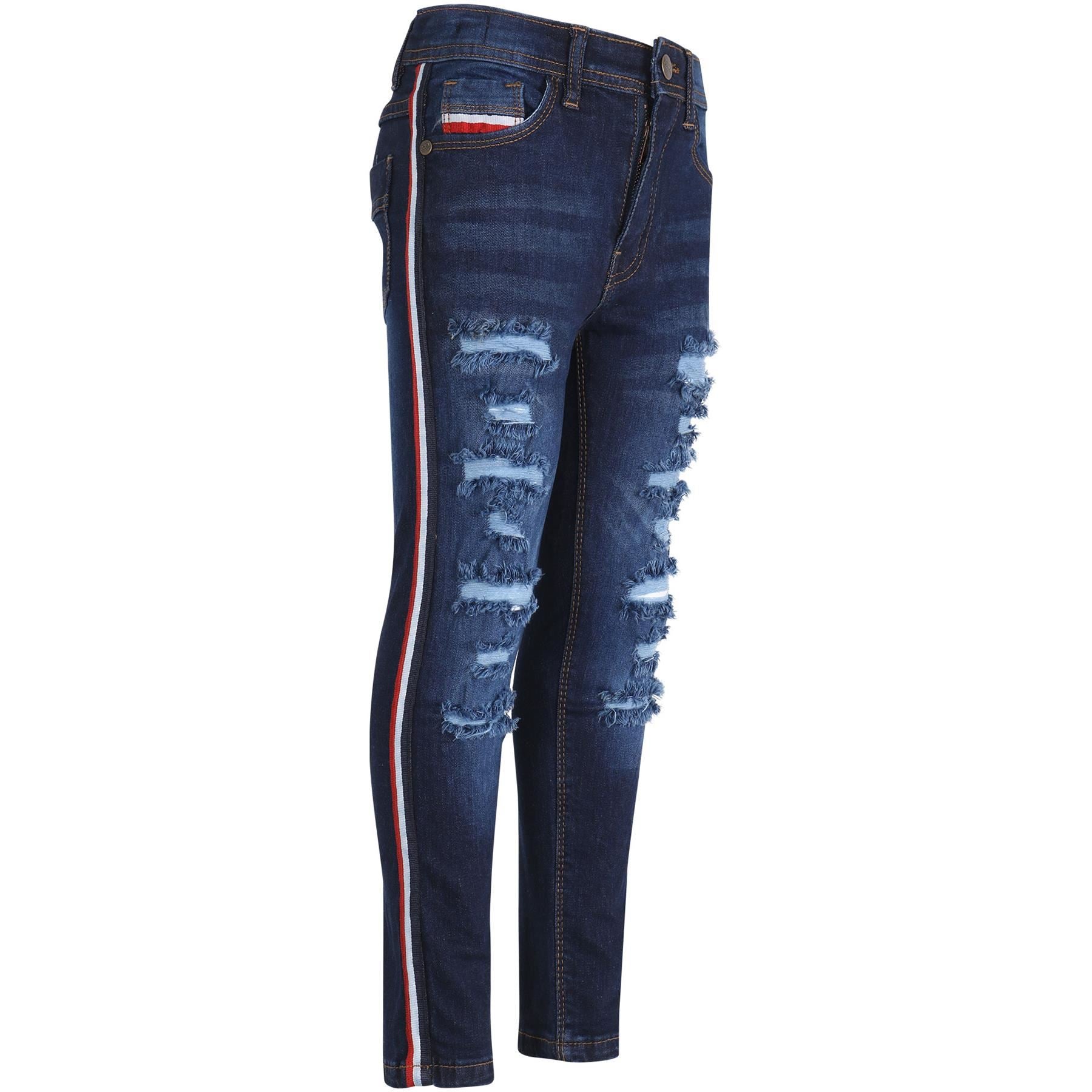 TDiscover the latest innovation in children's fashion: ripped jeans. These straight-fit trousers seamlessly blend the elegance of ripped pants with the enduring appeal of denim. The sophisticated silhouette exudes style and ensures a comfortable fit, making them ideal for casual and formal outings. Enable your young trendsetter to make a fashion statement with every stride. -