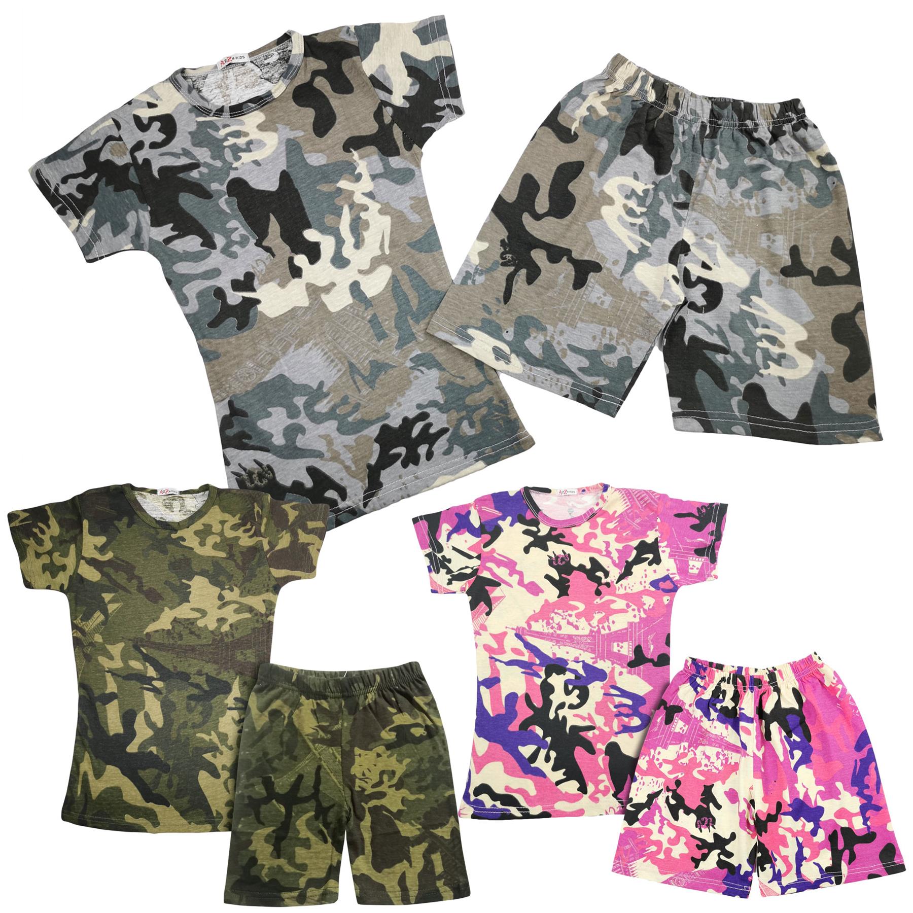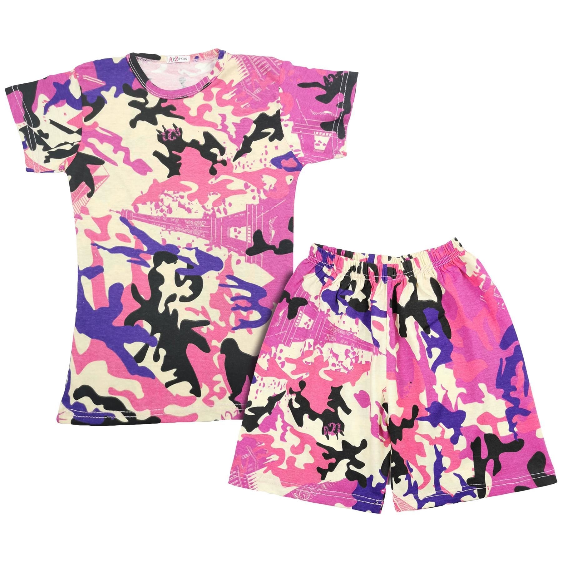 A2Z 4 Kids Girls T-shirt Top Shorts Set Camouflage 100% Cotton Short 2 Piece Set