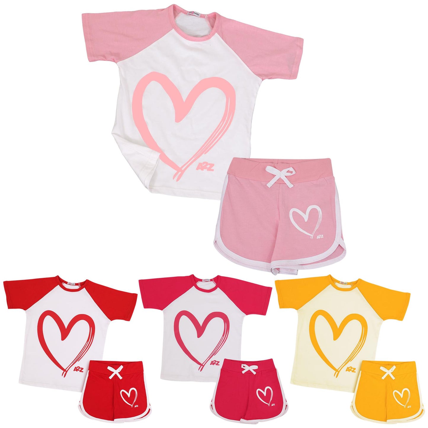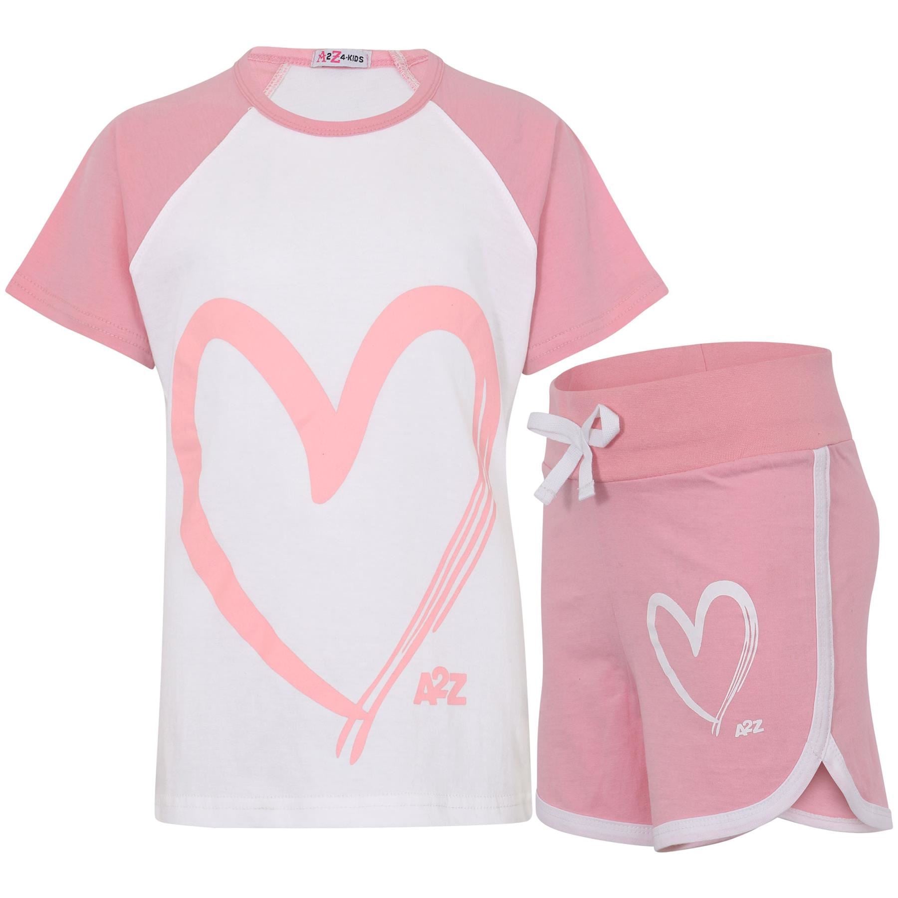 A2Z 4 Kids Girls T-shirt Top Shorts Set Summer Outfits Raglan Style 2 Piece Sets