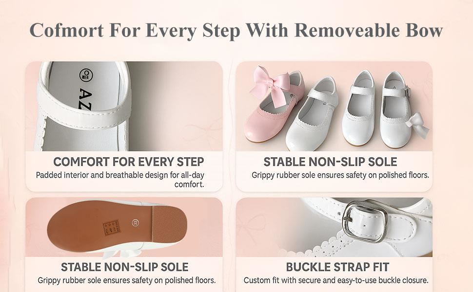 Equipped with a durable TPR rubber sole that ensures excellent grip on smooth and polished floors. These dress shoes help keep little ones safe during busy days and energetic dancing.