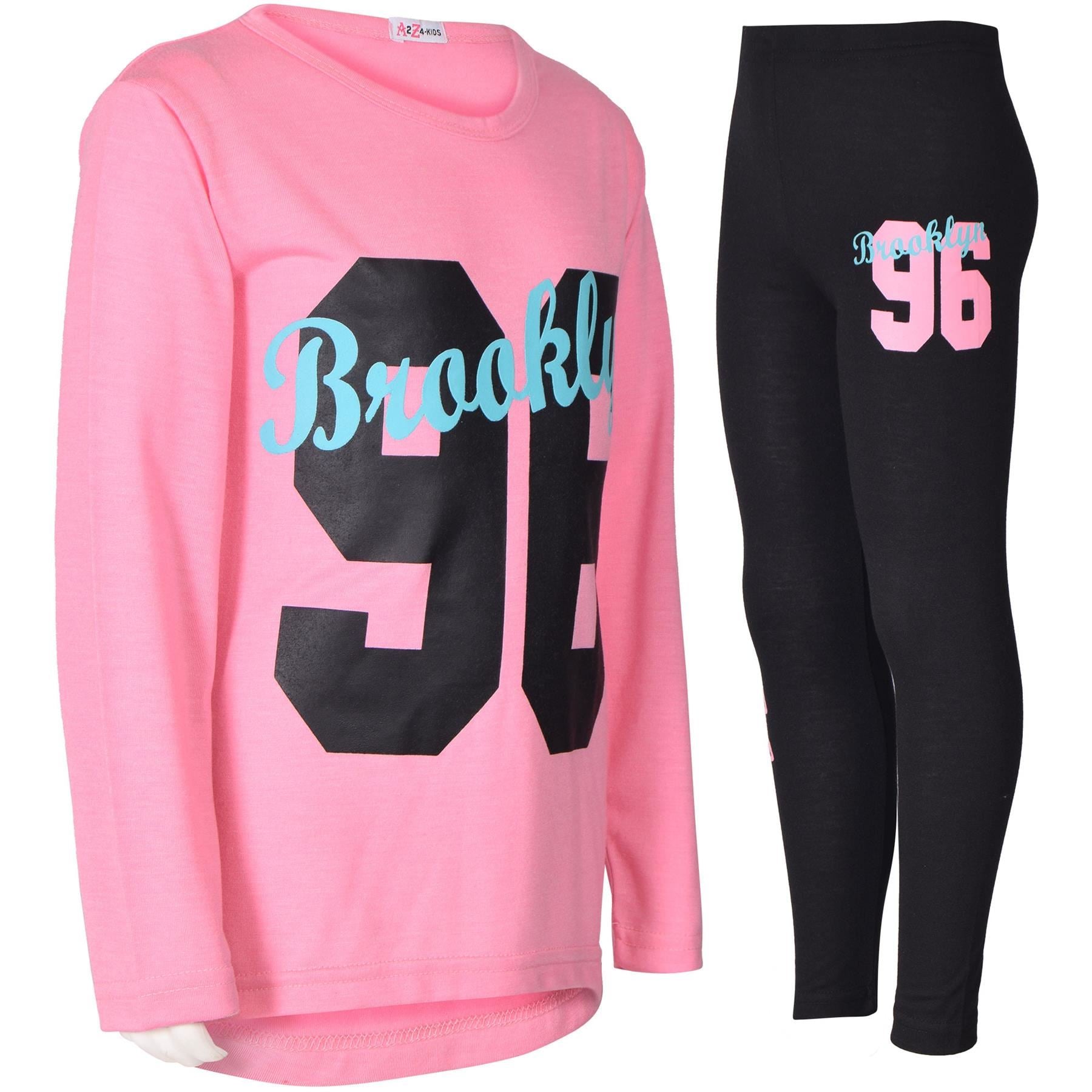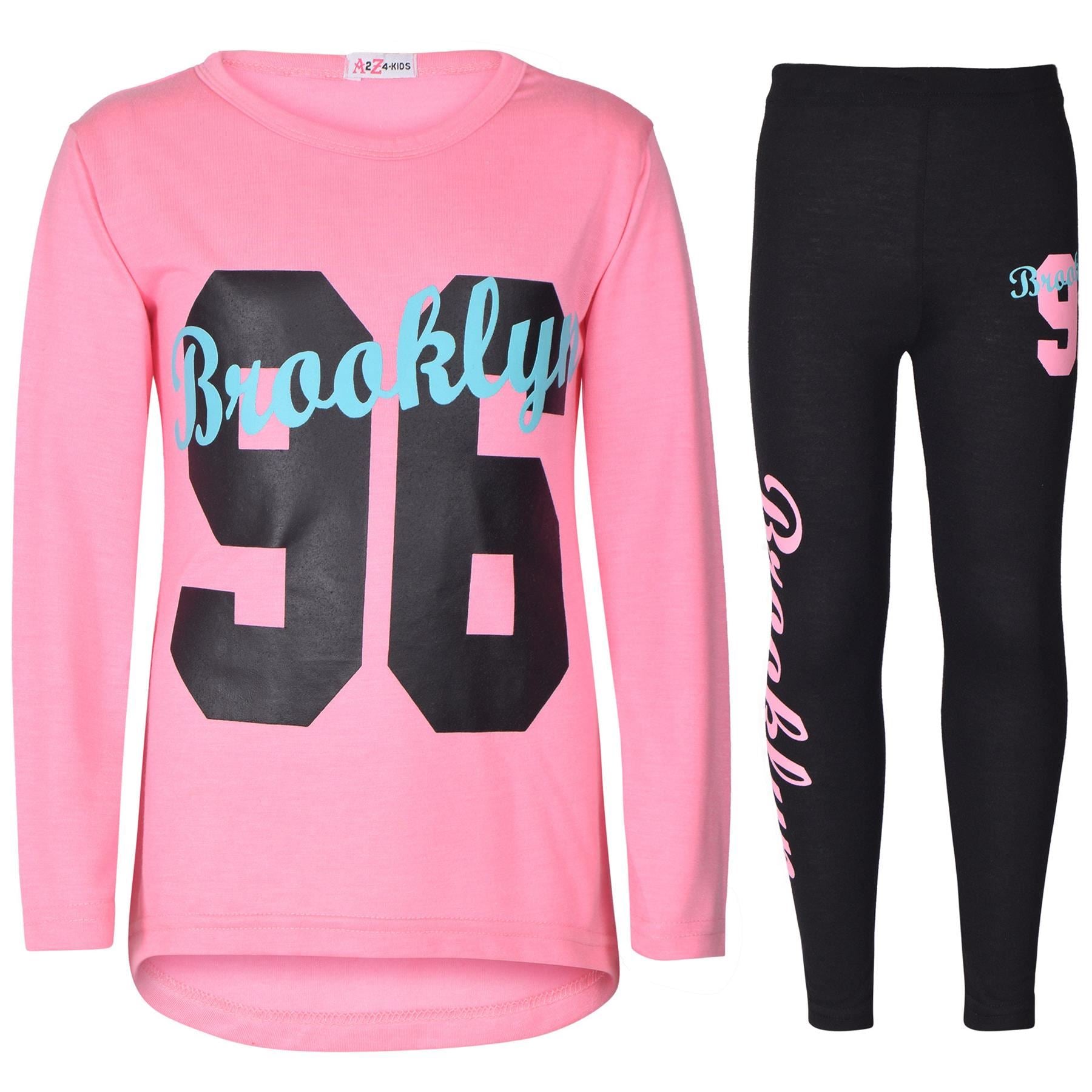 A2Z 4 Kids Girls Top Kids Brooklyn Print Trendy Long Sleeves Contrast Baby Pink T Shirt Tops & Fashion Legging Set For Girls Age 5 6 7 8 9 10 11 12 13 & 14 Years