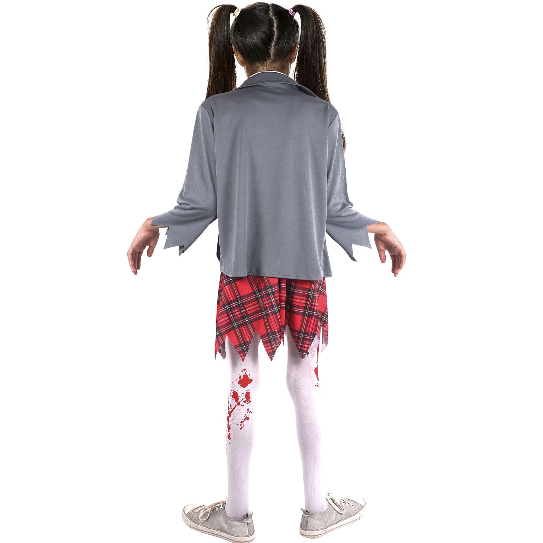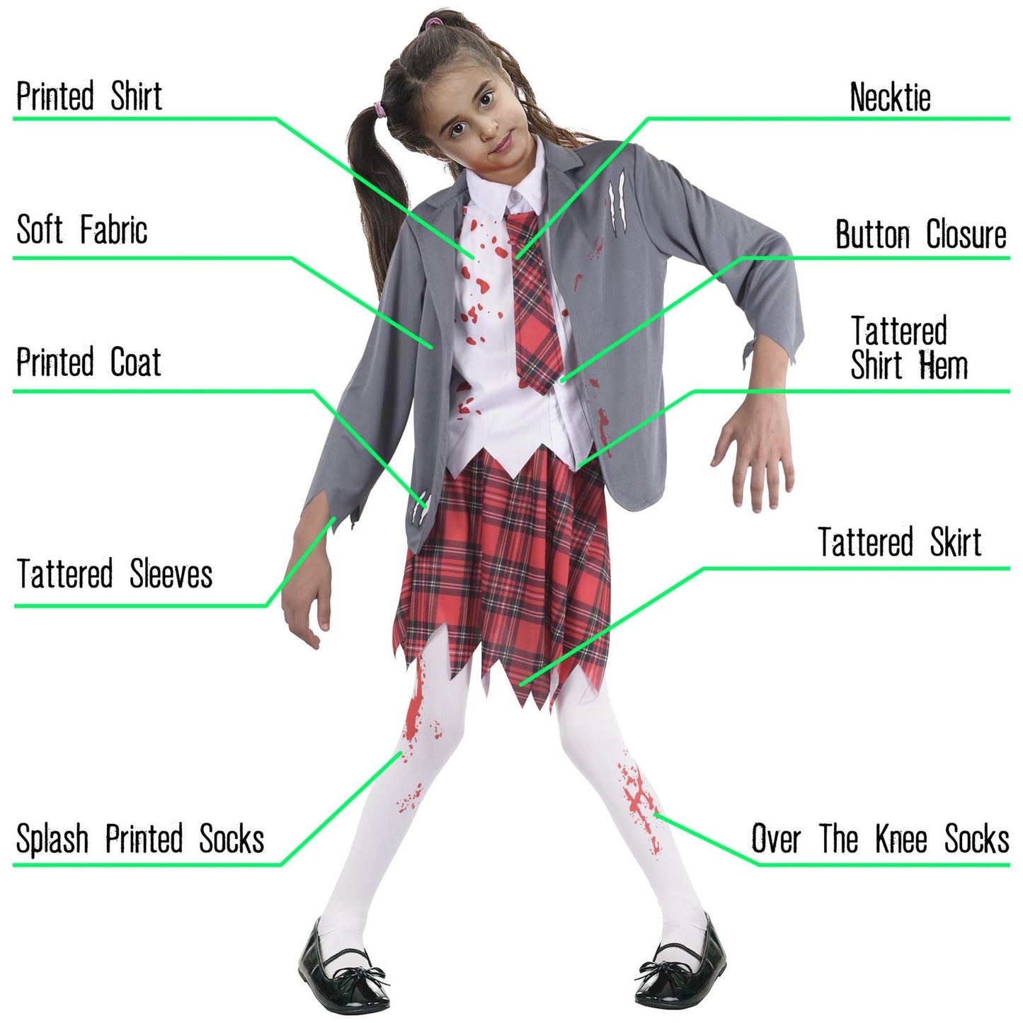 A2Z 4 Kids Girls Top Zombie School Girls Attire Lapel Collar Top & Trouser Set With Necktie Halloween Zombie Set