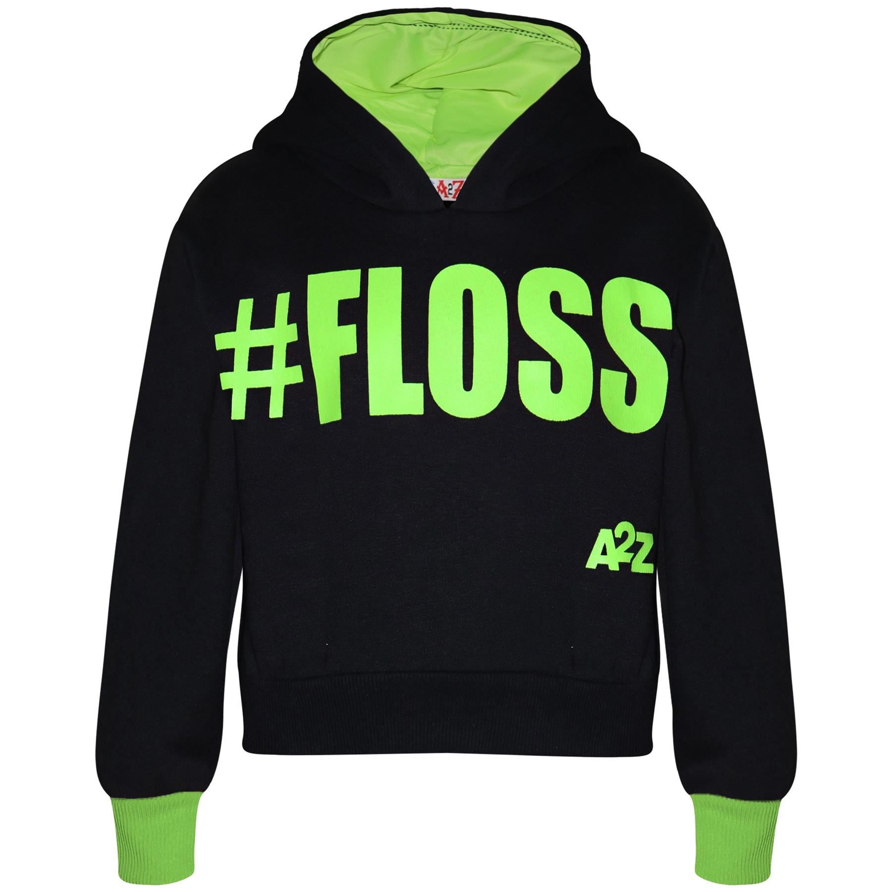 A2Z 4 Kids Girls Tracksuit Designer's #Floss Print Fleece Black & Neon Green Hooded Crop Top Bottom Jogging Suit Joggers Age 5 6 7 8 9 10 11 12 13 Years