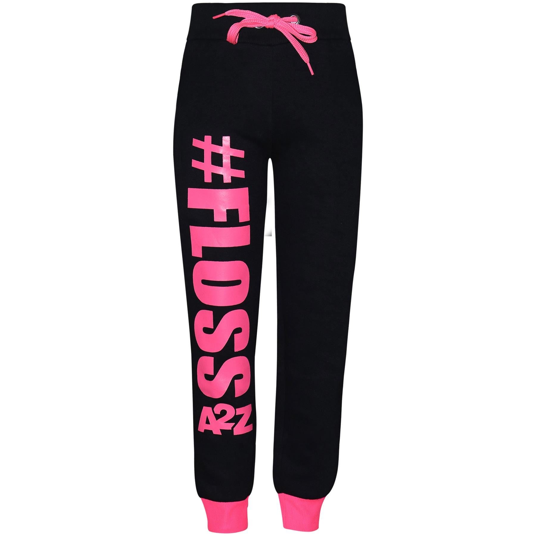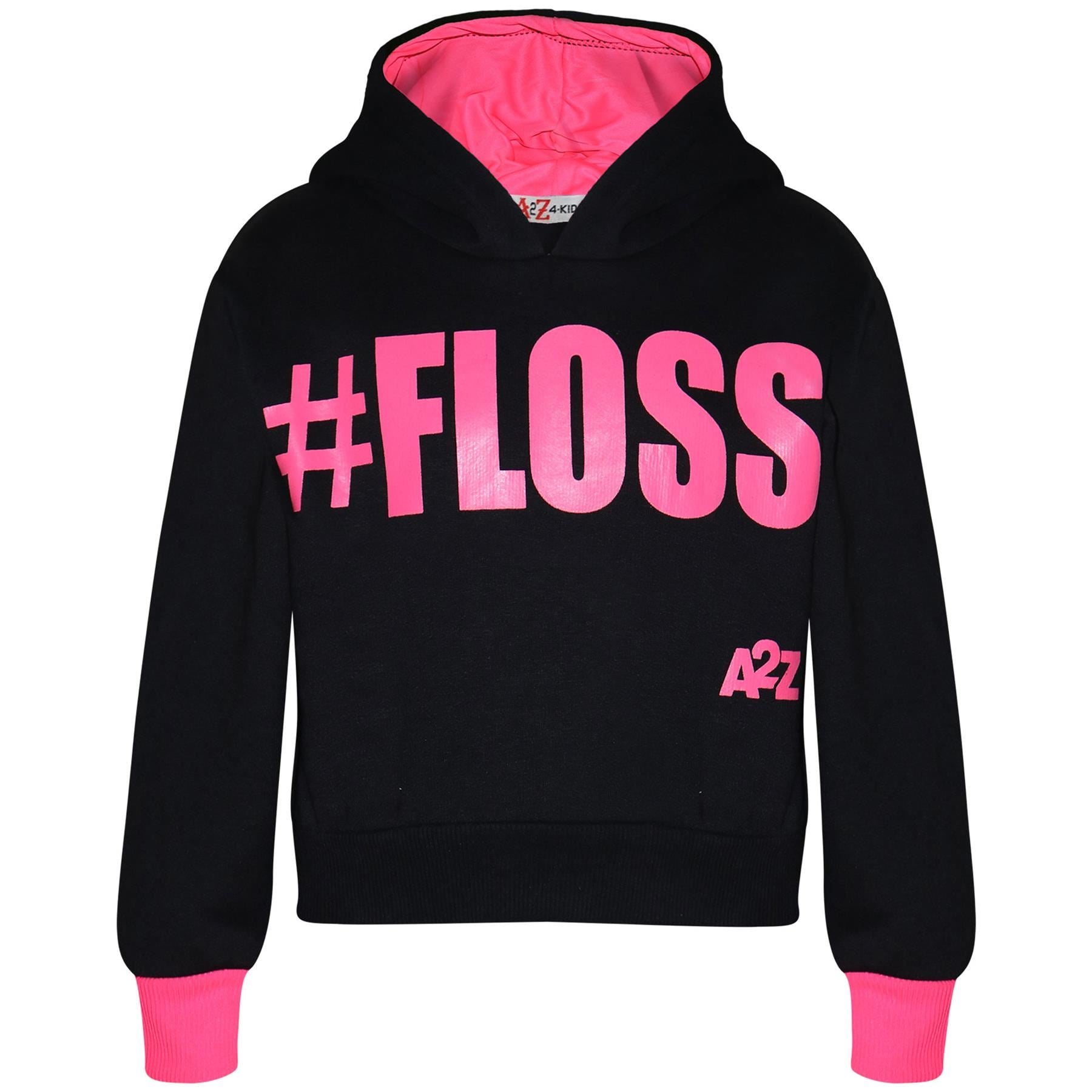 A2Z 4 Kids Girls Tracksuit Designer's #Floss Print Fleece Black & Neon Pink Hooded Crop Top Bottom Jogging Suit Joggers Age 5 6 7 8 9 10 11 12 13 Years