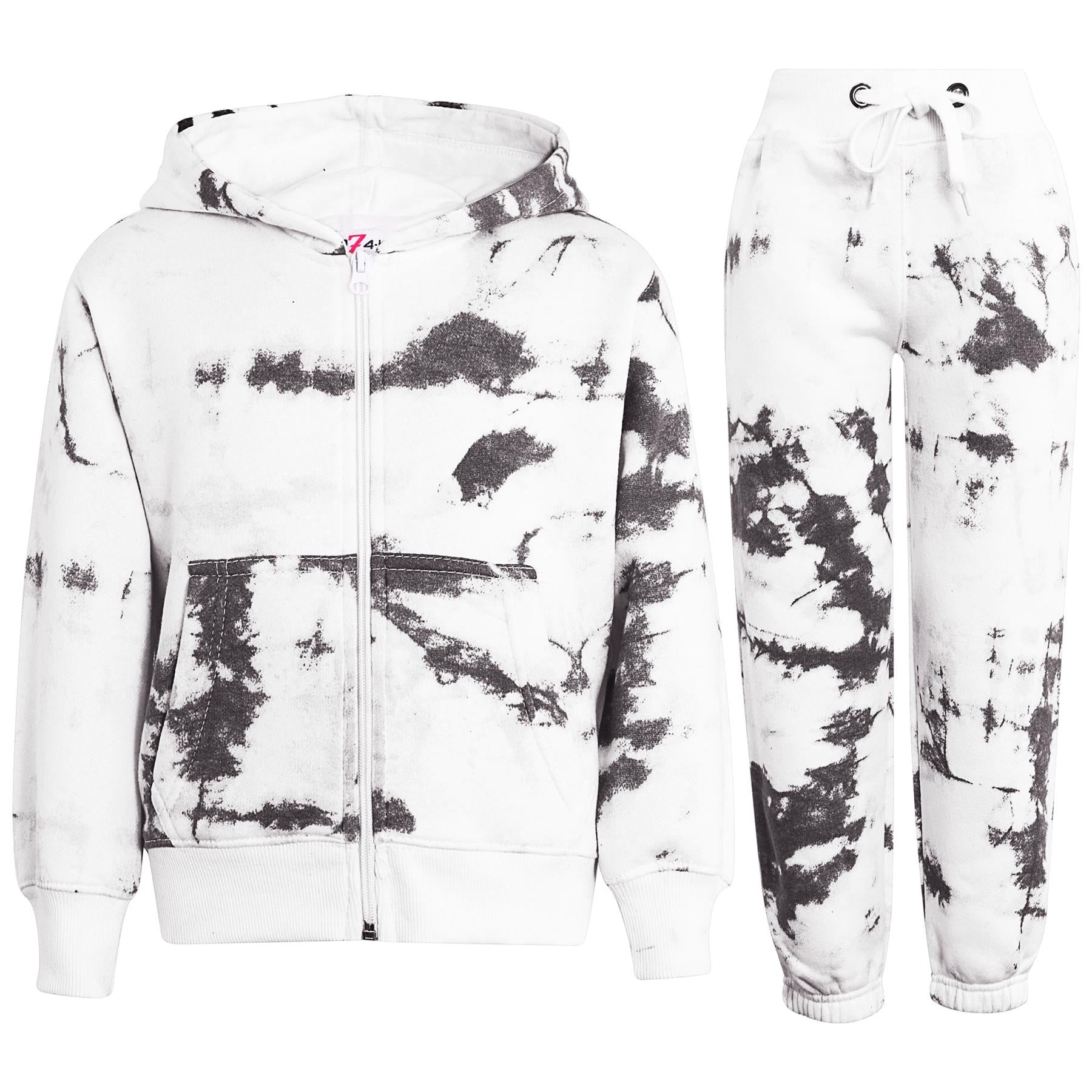 A2Z 4 Kids Girls Tracksuit Designer's Tie Dye Print Fleece Black Hooded Zip Up Hoodie & Bottom Jogging Suit Joggers Age 5 6 7 8 9 10 11 12 13 Years