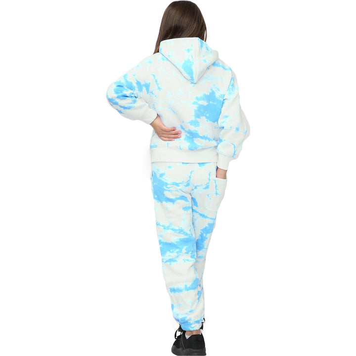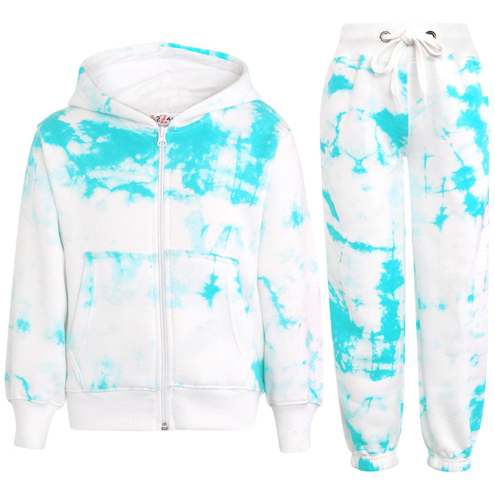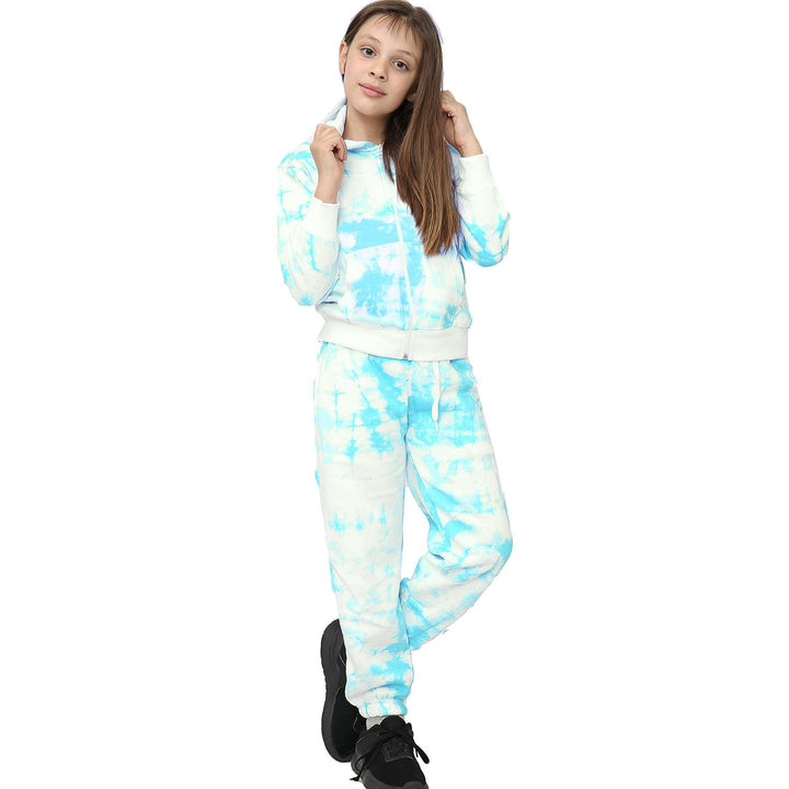 A2Z 4 Kids Girls Tracksuit Designer's Tie Dye Print Fleece Blue Hooded Zip Up Hoodie & Bottom Jogging Suit Joggers Age 5 6 7 8 9 10 11 12 13 Years