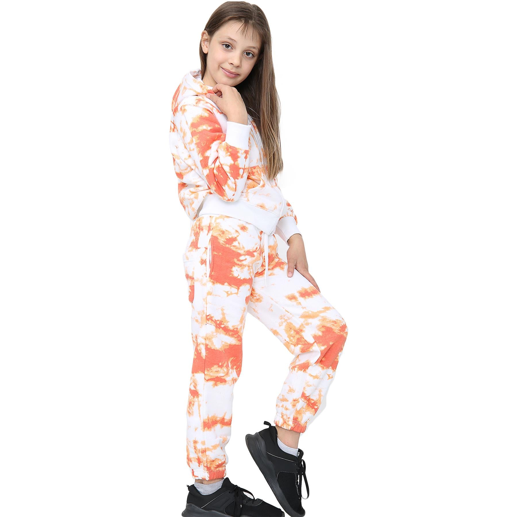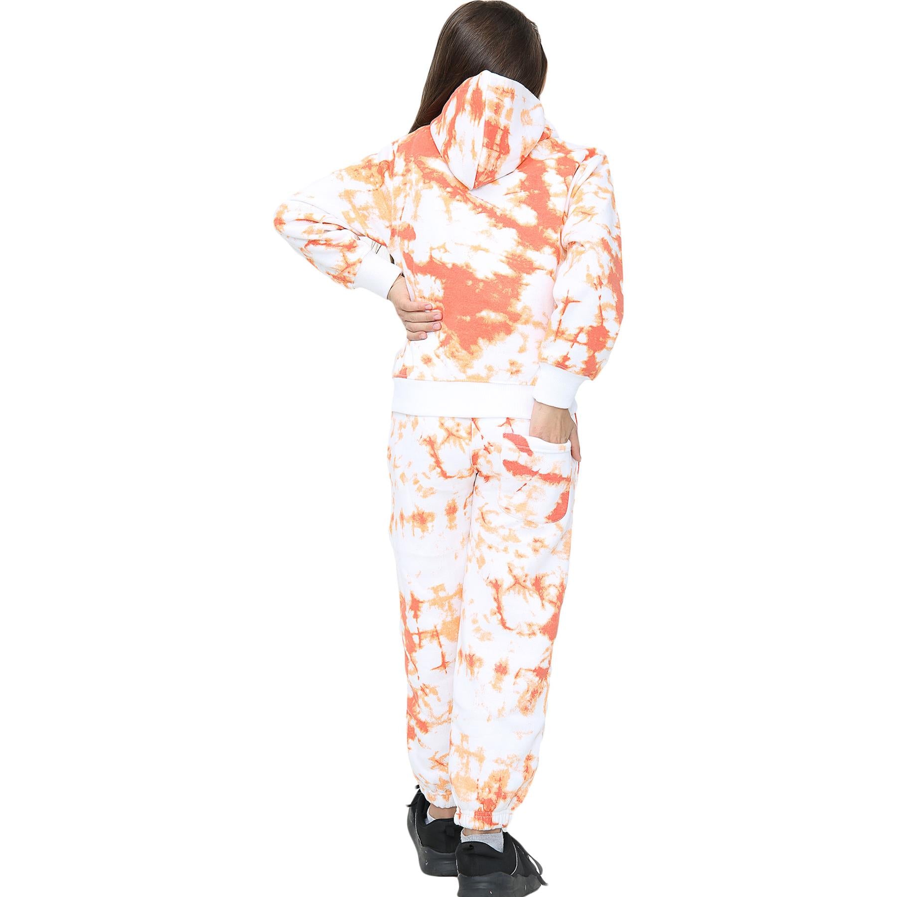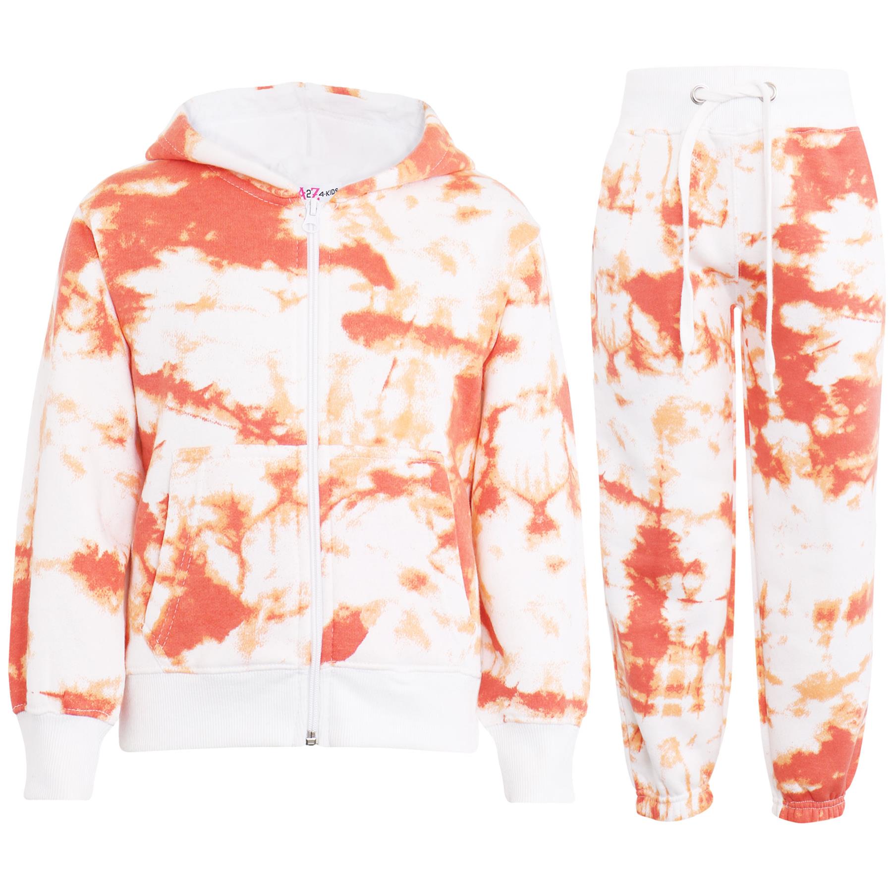 A2Z 4 Kids Girls Tracksuit Designer's Tie Dye Print Fleece Orange Hooded Zip Up Hoodie & Bottom Jogging Suit Joggers Age 5 6 7 8 9 10 11 12 13 Years