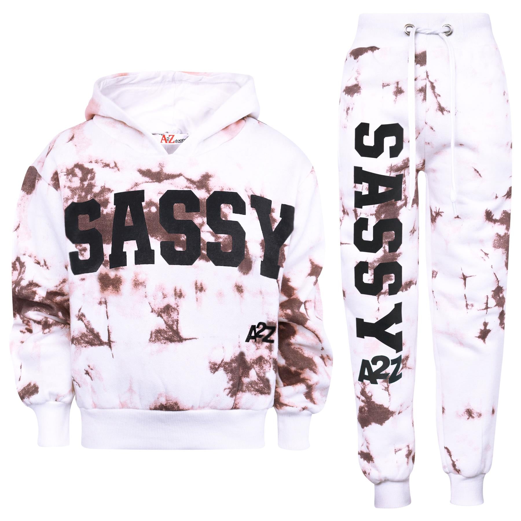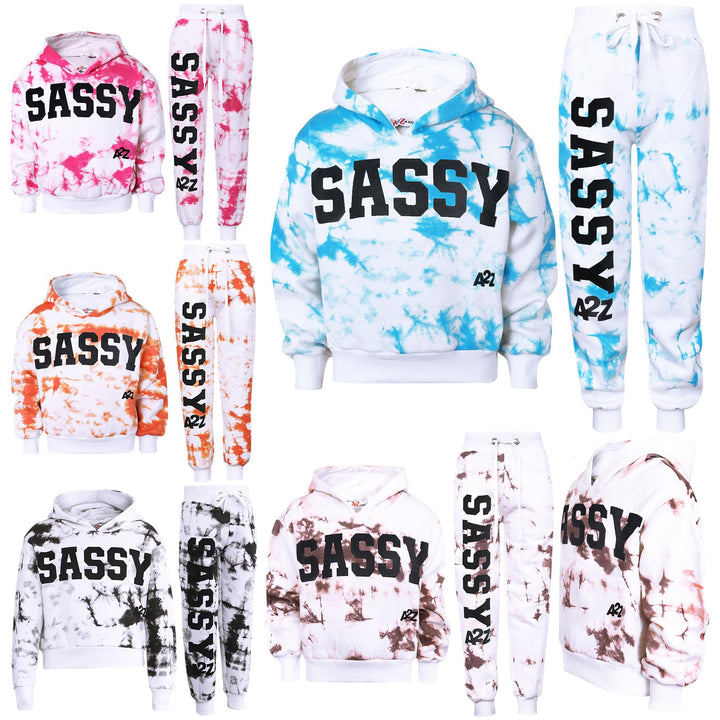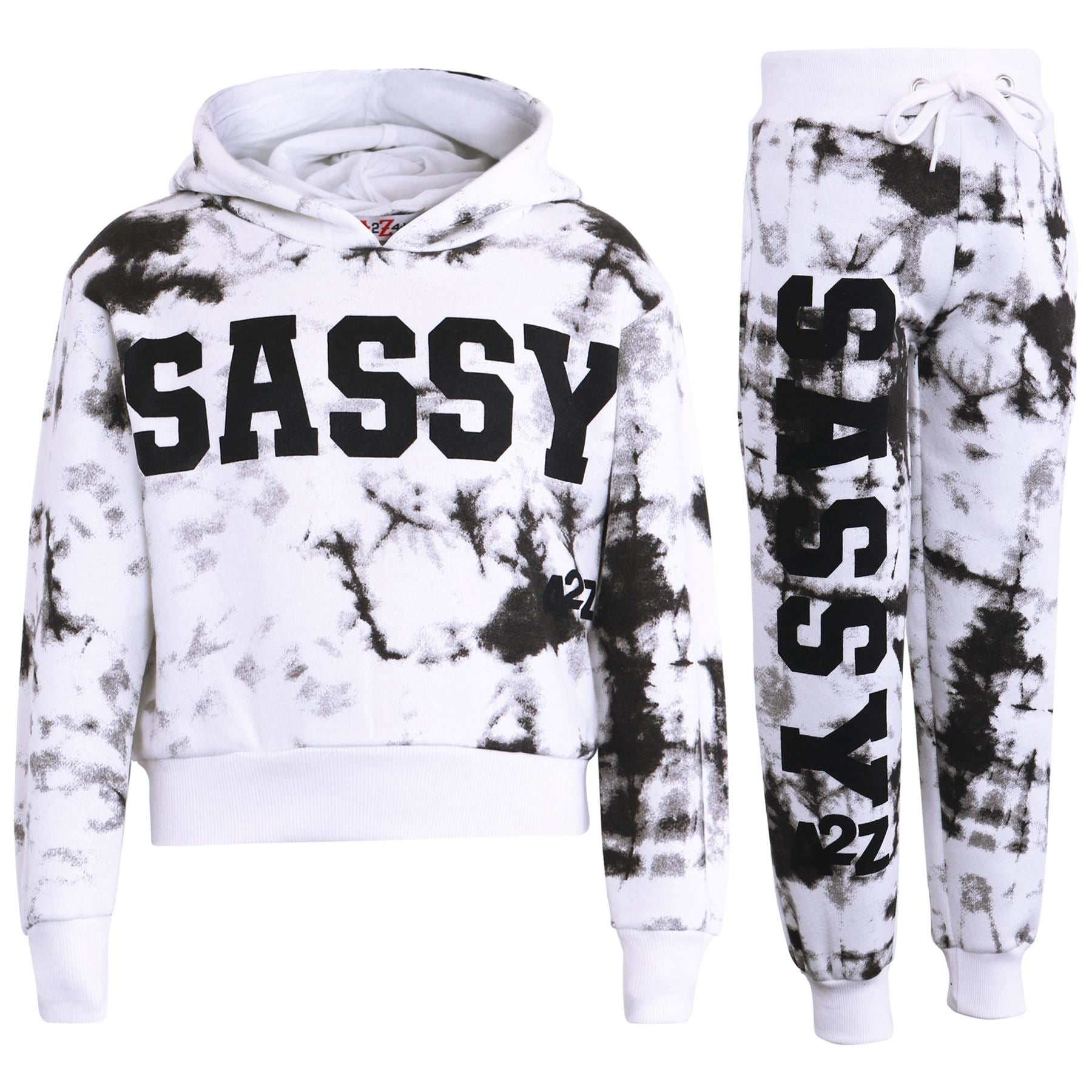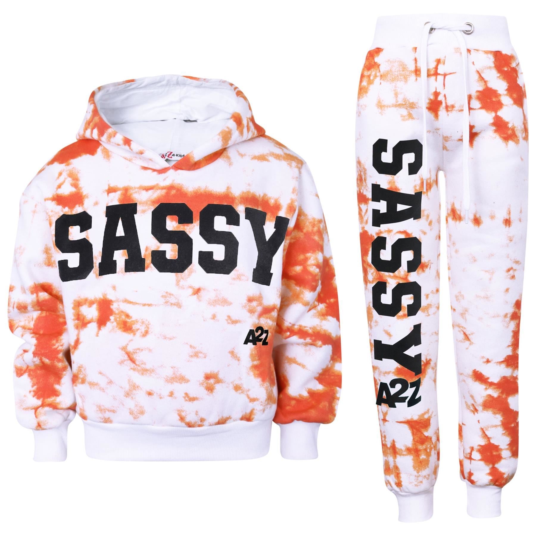 A2Z 4 Kids Girls Tracksuit Tie Dye Sassy Hooded Crop Top Jogging Suit