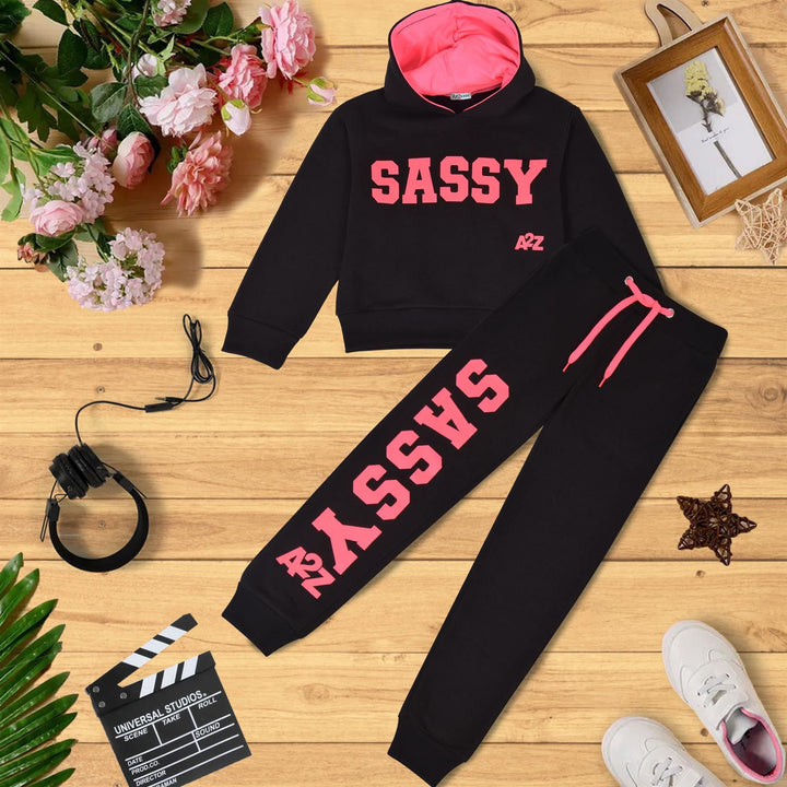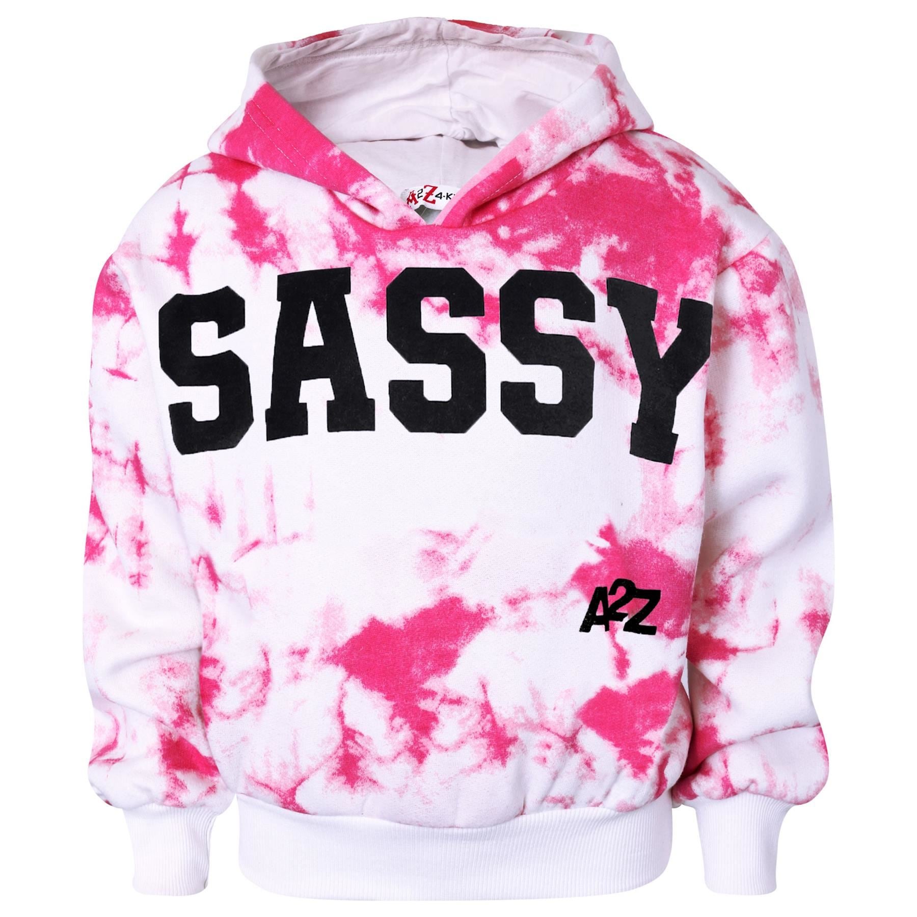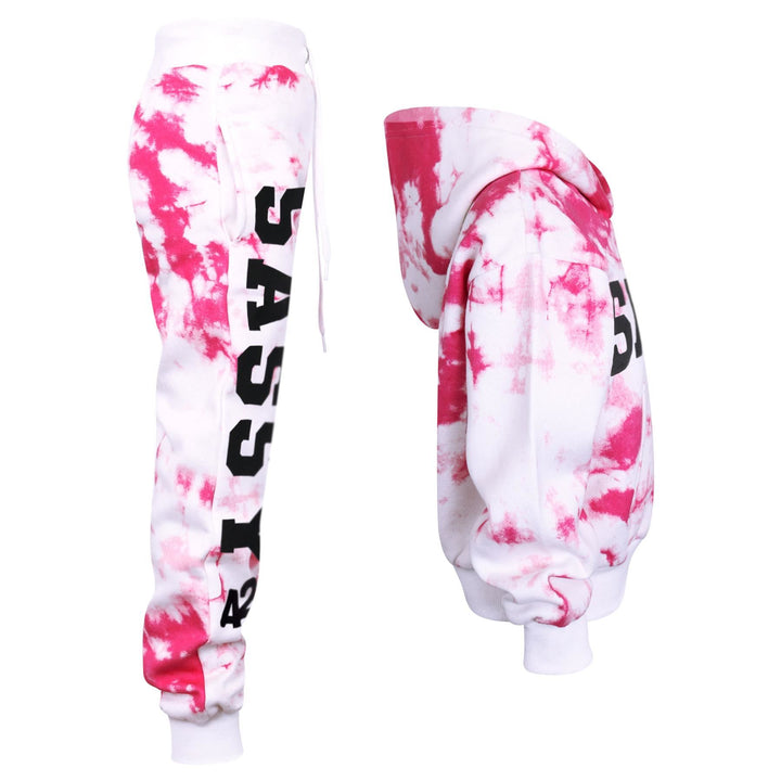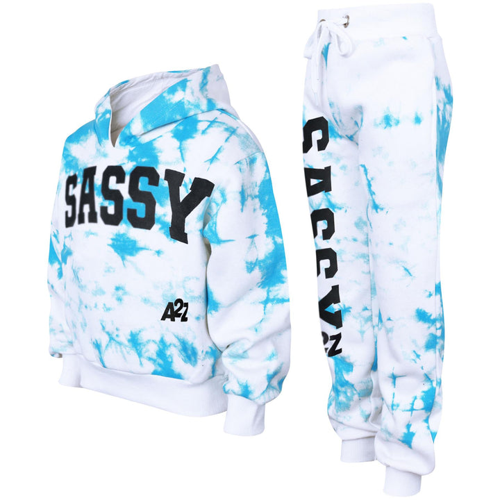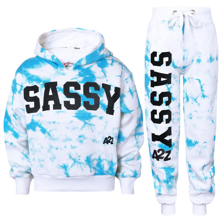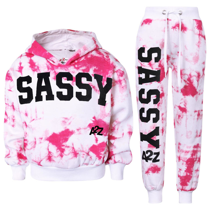 A2Z 4 Kids Girls Tracksuit Tie Dye Sassy Hooded Crop Top Jogging Suit