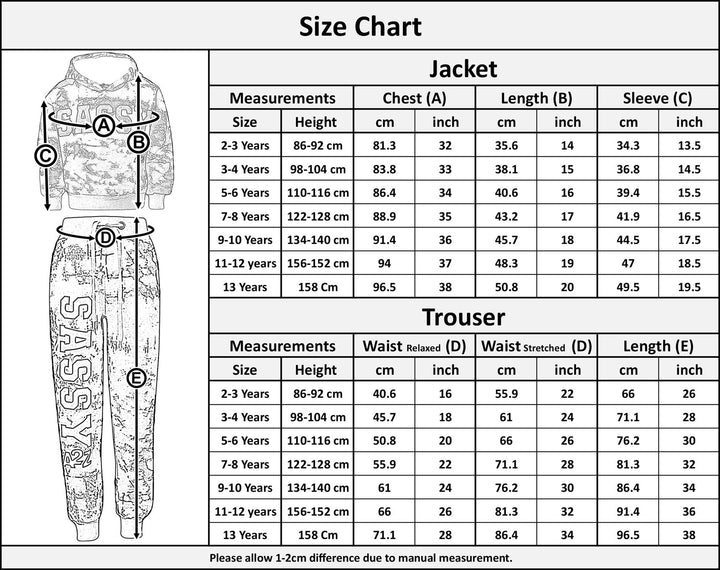 - COMFORTABLE: Thoughtfully designed, this 2-piece set includes a long-sleeve top and joggers, making it ideal for wear in any weather, rainy, windy, or sunny. Perfect for activities like walking, jogging, sports workouts, or cardio. The lightweight Polyester fabric ensures cosy warmth on cooler days while remaining breathable and non-restrictive for maximum comfort. HIGH-QUALITY MATERIAL: This tracksuit is crafted from a premium blend of 100% polyester, offering excellent flexibility and durability. Manufactured using high-quality materials, it ensures long-lasting wear. The polyester-blend fleece fabric provides a soft, breathable feel, keeping your child comfortable and cool. FEATURES: The jacket has easy wear, a hood for added protection, ribbed cuffs and a waist for a secure fit. The joggers feature an ribbed waistband for a tailored fit and ribbed ankle cuffs to keep them in place during active use. This set seamlessly combines style and practicality. CLASSIC COLORS AND SIZE FOR EVERY OCCASION: This tracksuit is available in a versatile shade that complements any setting, from casual outings to sporty activities. Offered in a range of sizes 5-6 years, 7-8 years, 9-10 years, 11-12 years, and 13 years, it perfectly fits kids of all ages, effortlessly blending comfort, style, and practicality. IDEAL: This tracksuit is stylish and functional. Ideal for running, jogging, or casual outings, it offers a lightweight yet cosy feel with its breathable Polyester material. Designed for relaxing at home or staying active, it ensures durability and modern style for any occasion.