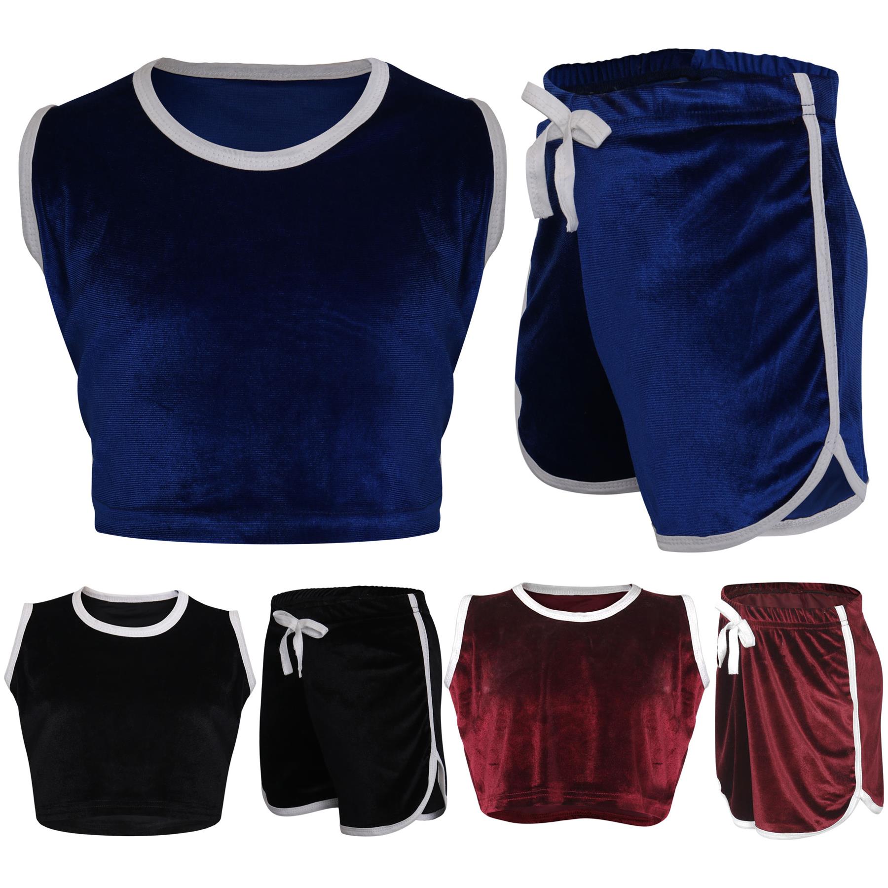 A2Z 4 Kids Girls Velour Crop Top Shorts Set Contrast Taped Outfit Clothing Sets