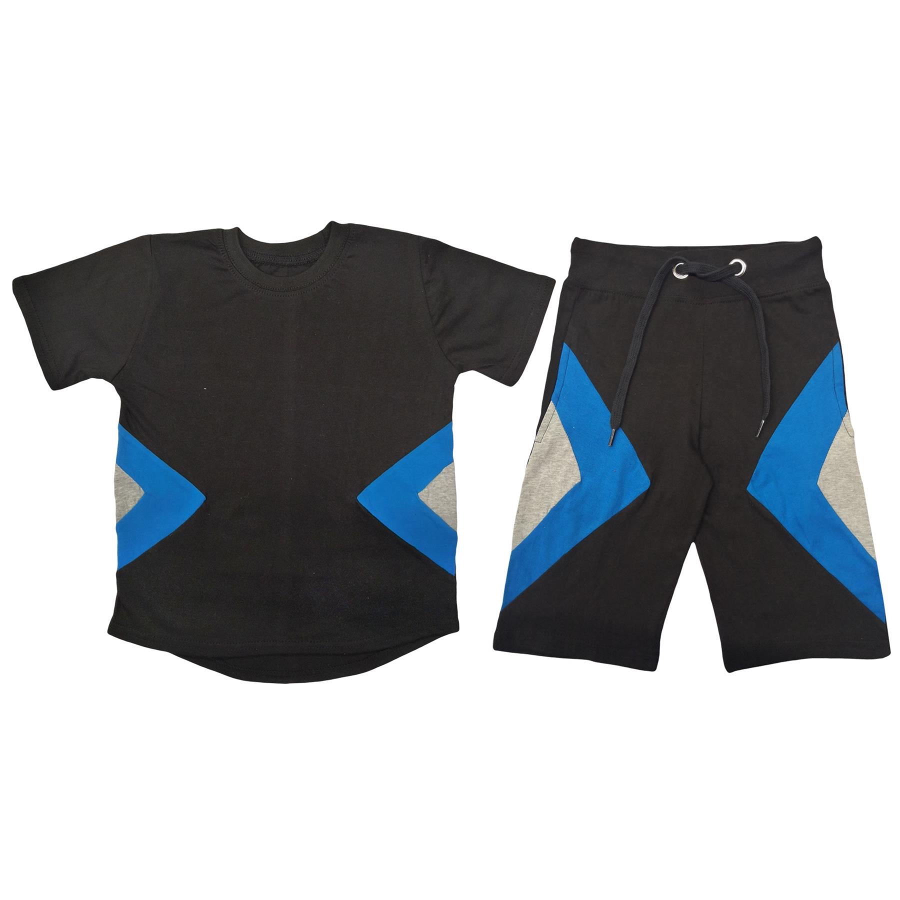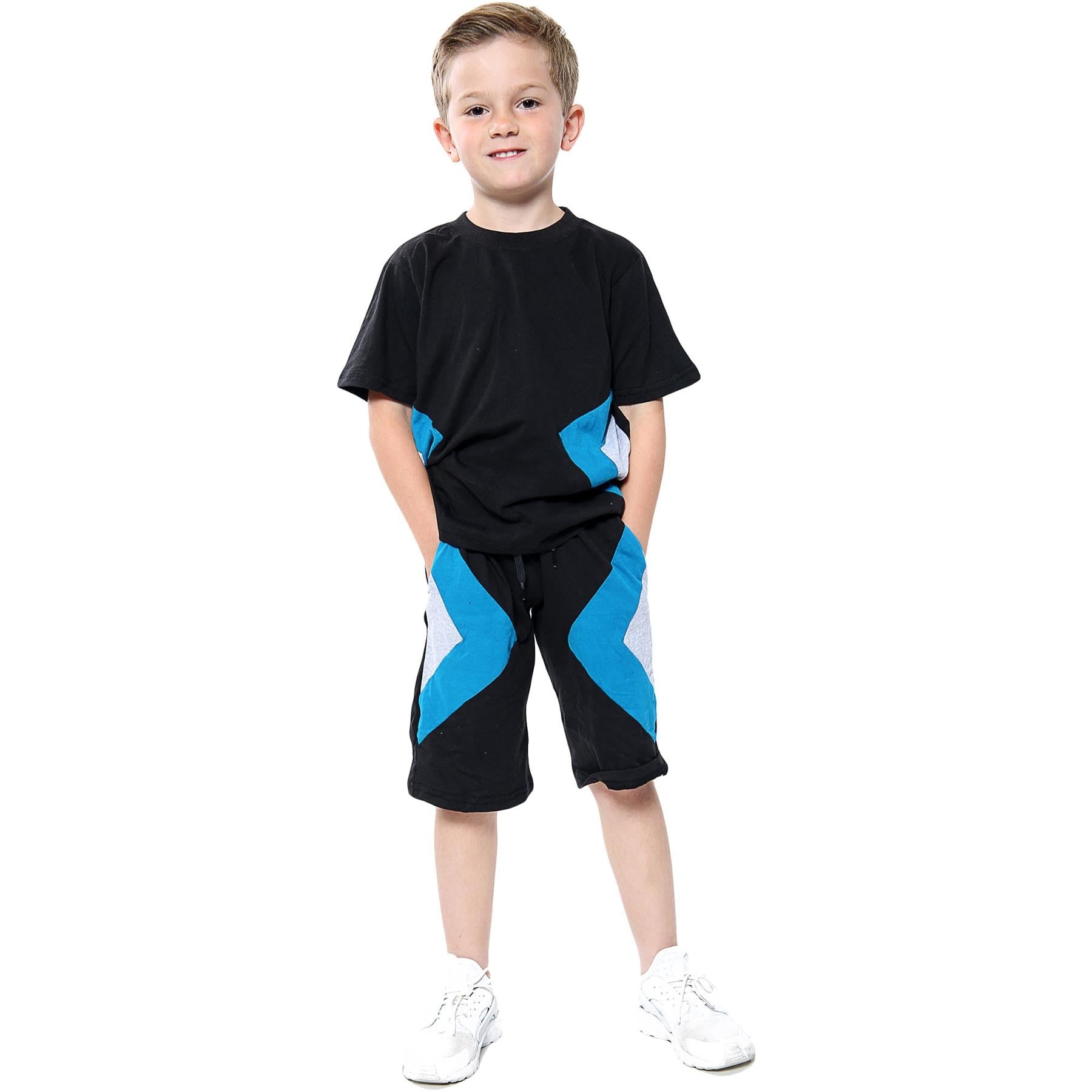 A2Z 4 Kids Kids Girls Boys Shorts Set 100% Cotton Contrast Panelled Black._Trendy Fashion Summer T Shirt Top & Short Pants Gymwear Outfit Clothing Sets Age 5 6 7 8 9 10 11 12 13 Years