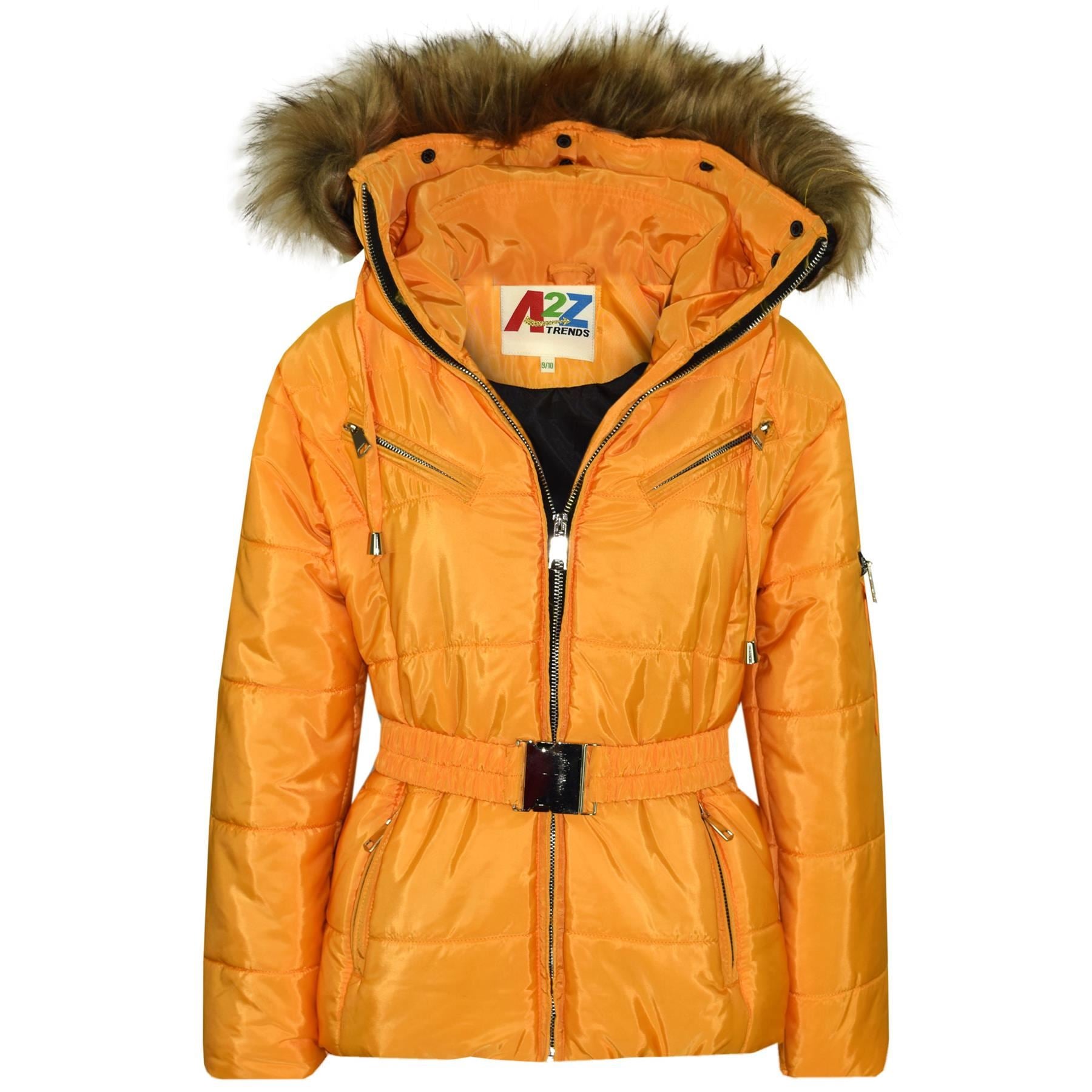A2Z 4 Kids Kids Girls Jackets Mustard Puffer Hooded Stylish Detachable Faux Fur Padded Zipped Belted Slim Fit Warm Coats New Age 5 6 7 8 9 10 11 12 13 Years