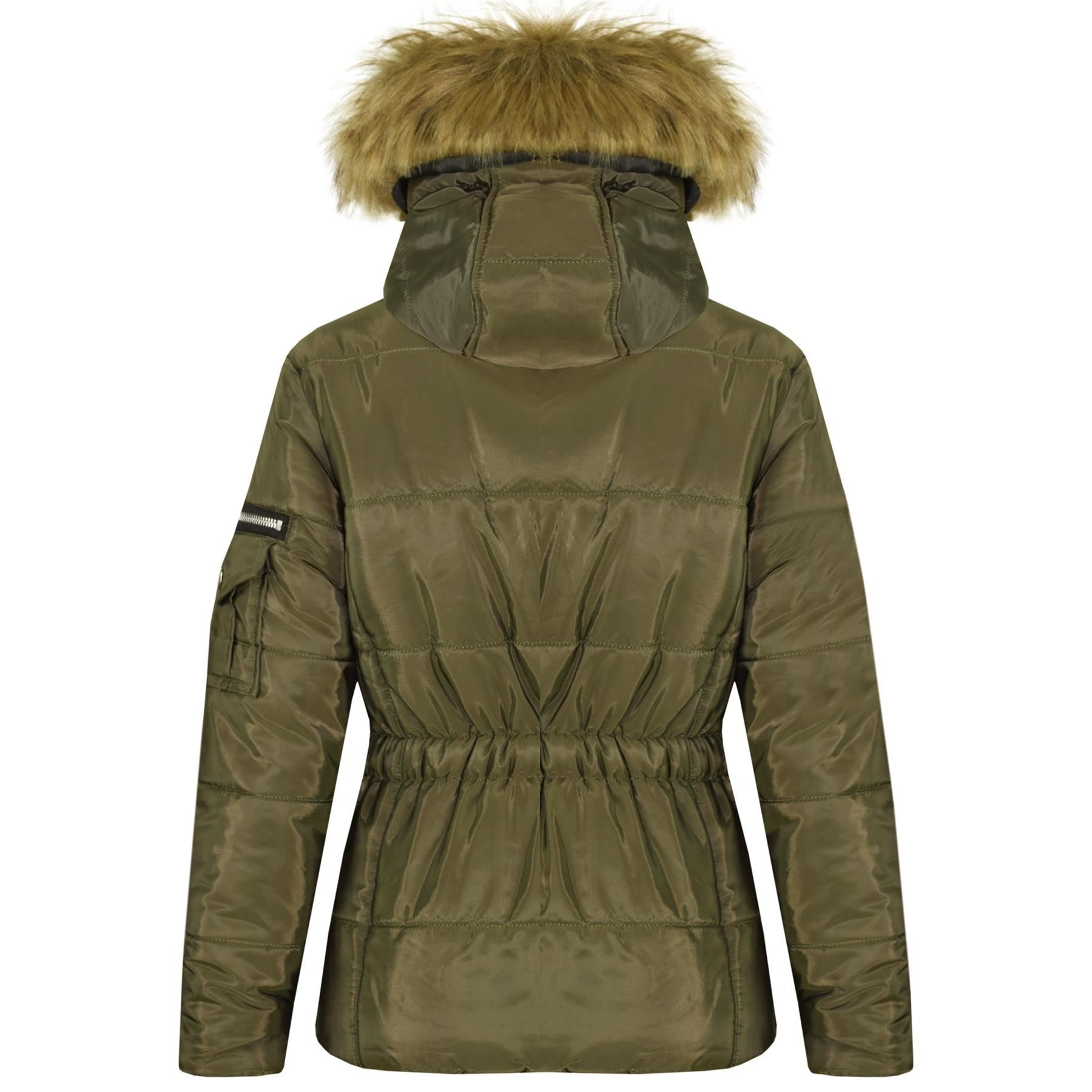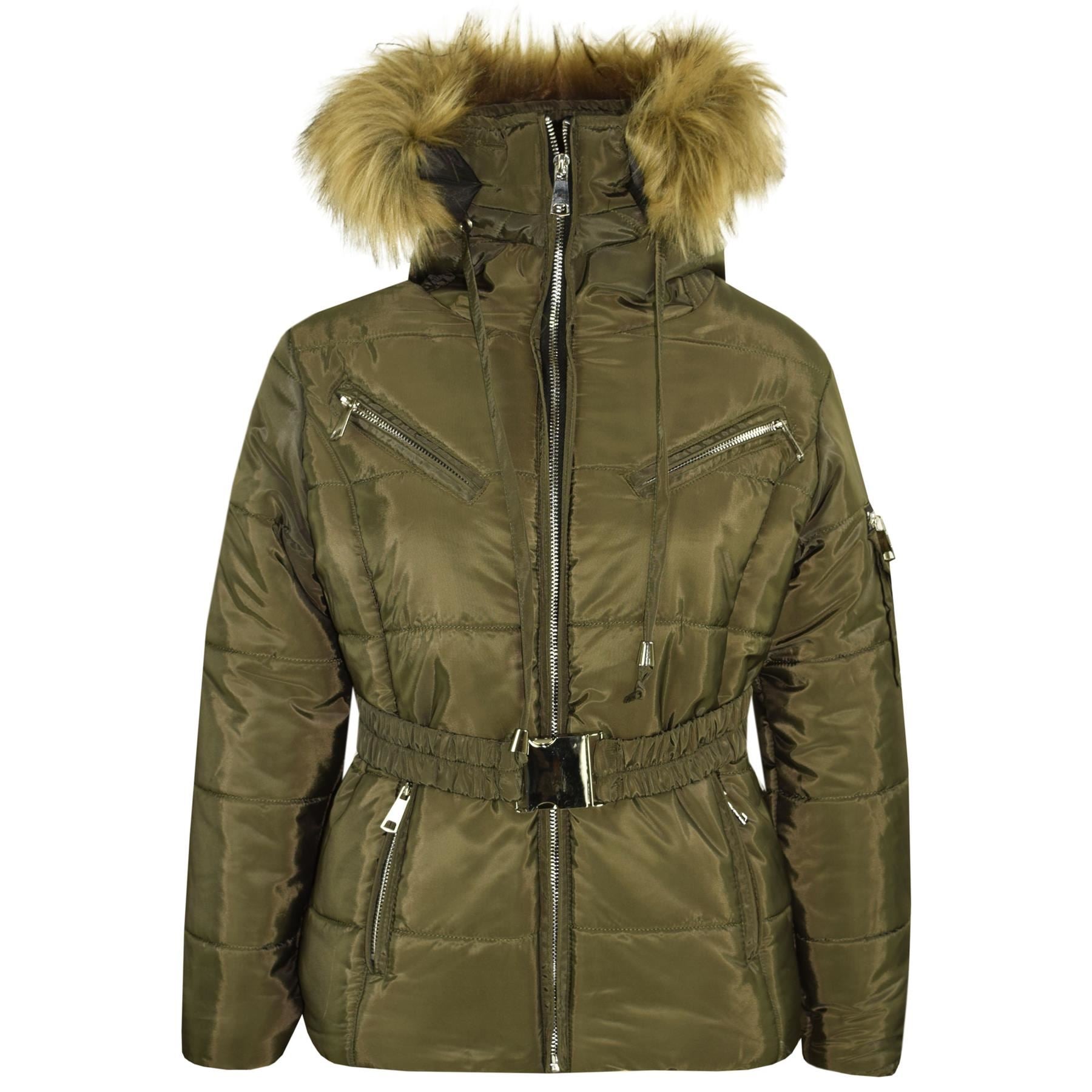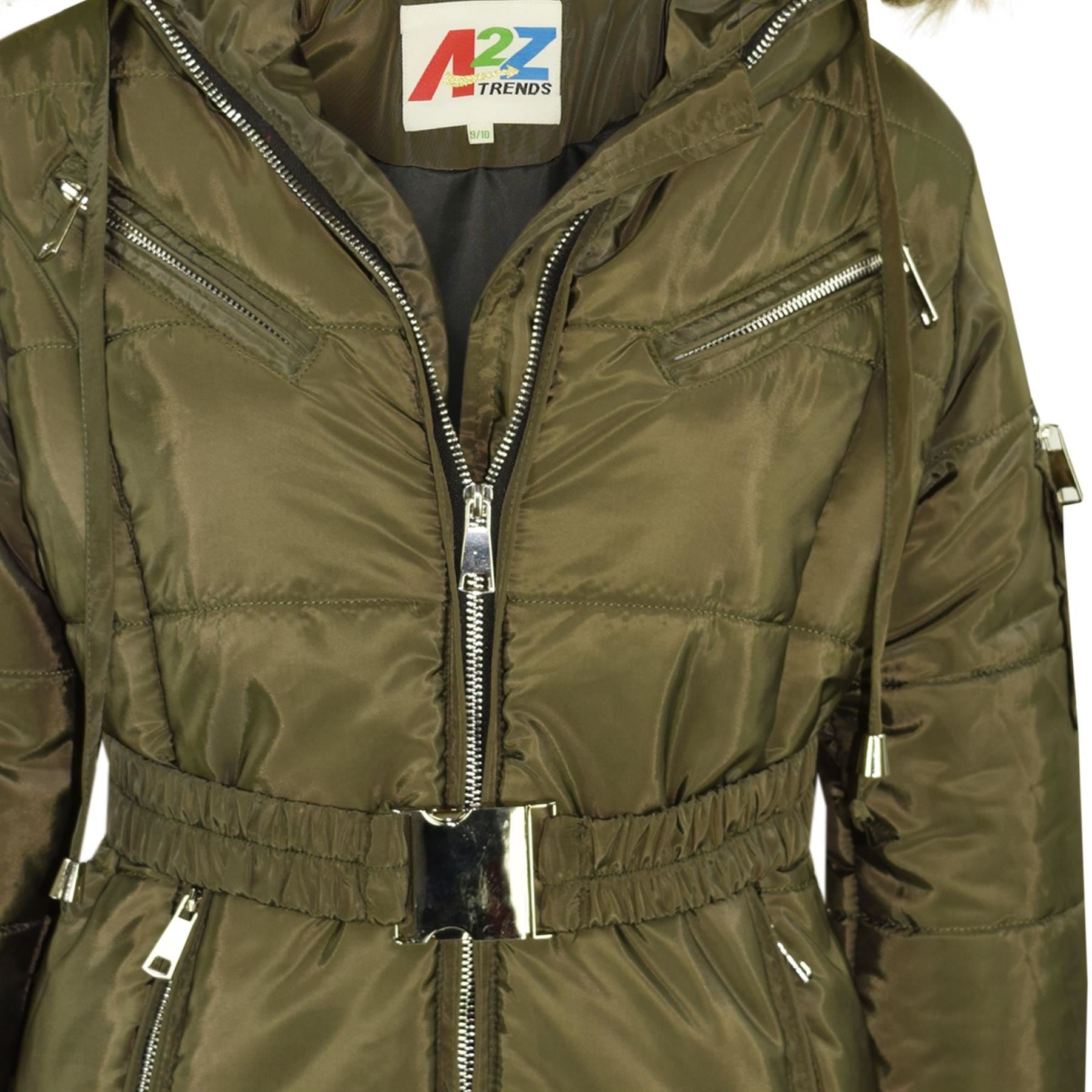 A2Z 4 Kids Kids Girls Jackets Olive Puffer Hooded Stylish Detachable Faux Fur Padded Zipped Belted Slim Fit Warm Coats New Age 5 6 7 8 9 10 11 12 13 Years