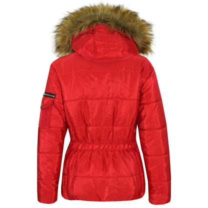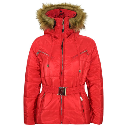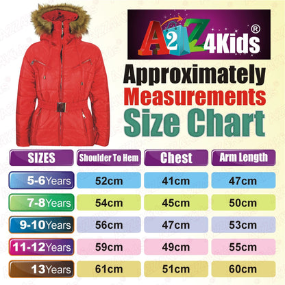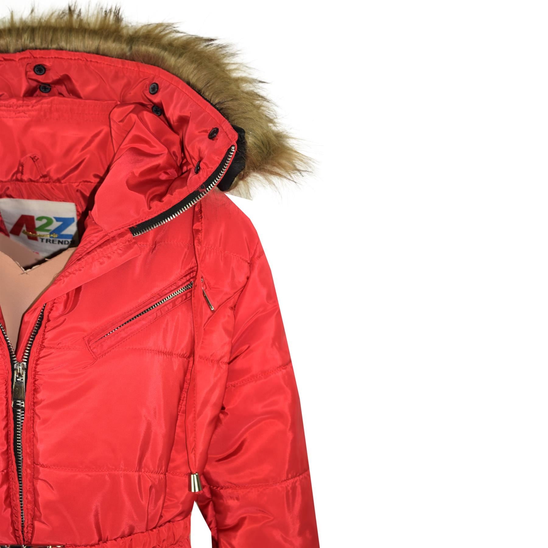 A2Z 4 Kids Kids Girls Jackets Red Puffer Hooded Stylish Detachable Faux Fur Padded Zipped Belted Slim Fit Warm Coats New Age 5 6 7 8 9 10 11 12 13 Years