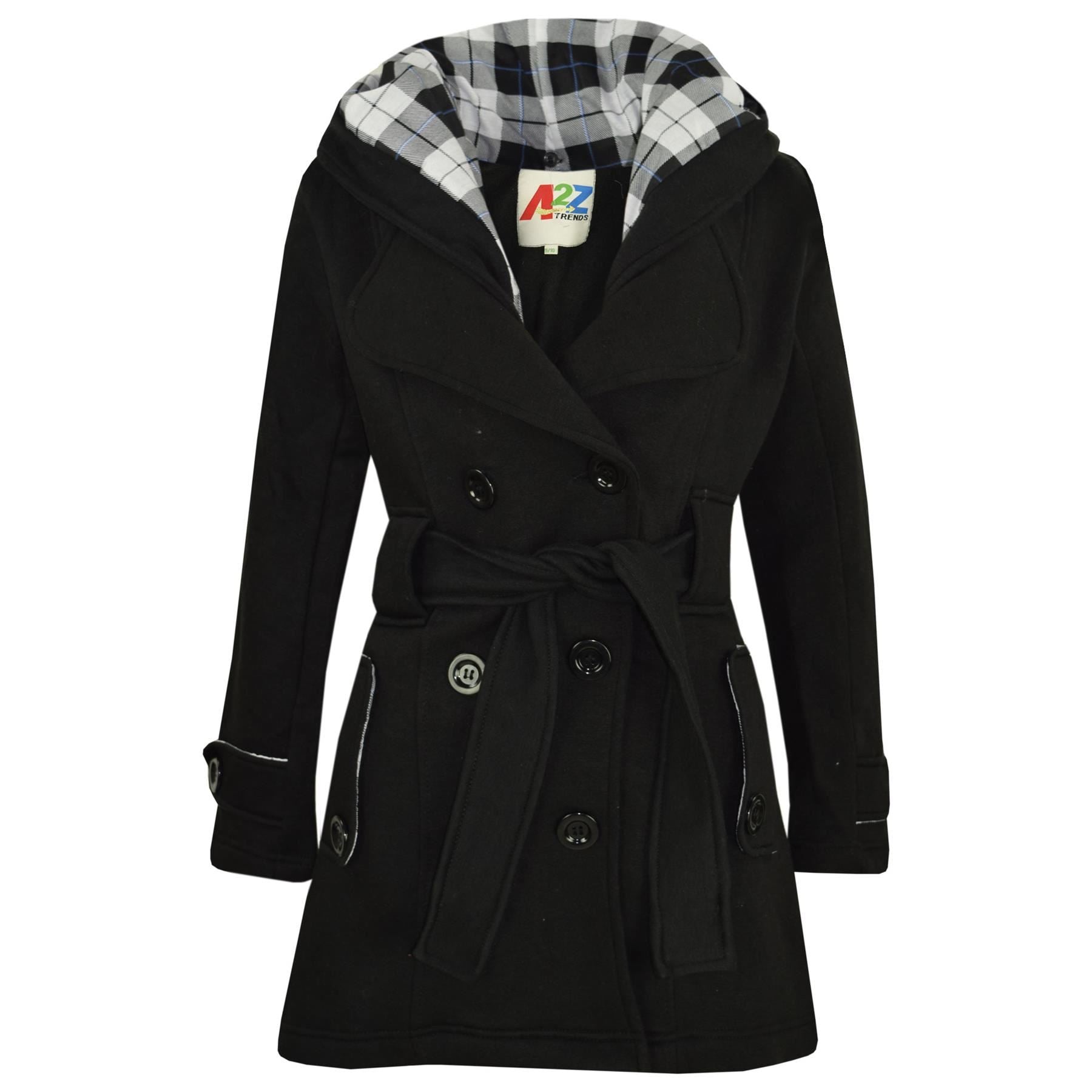 A2Z 4 Kids Kids Girls Parka Jacket Hooded Trench Coat Fashion Wool Blends Warm Padded Black Jacket Oversized Lapels Belted Cuffs Long Overcoat New Age 5 6 7 8 9 10 11 12 13 Years