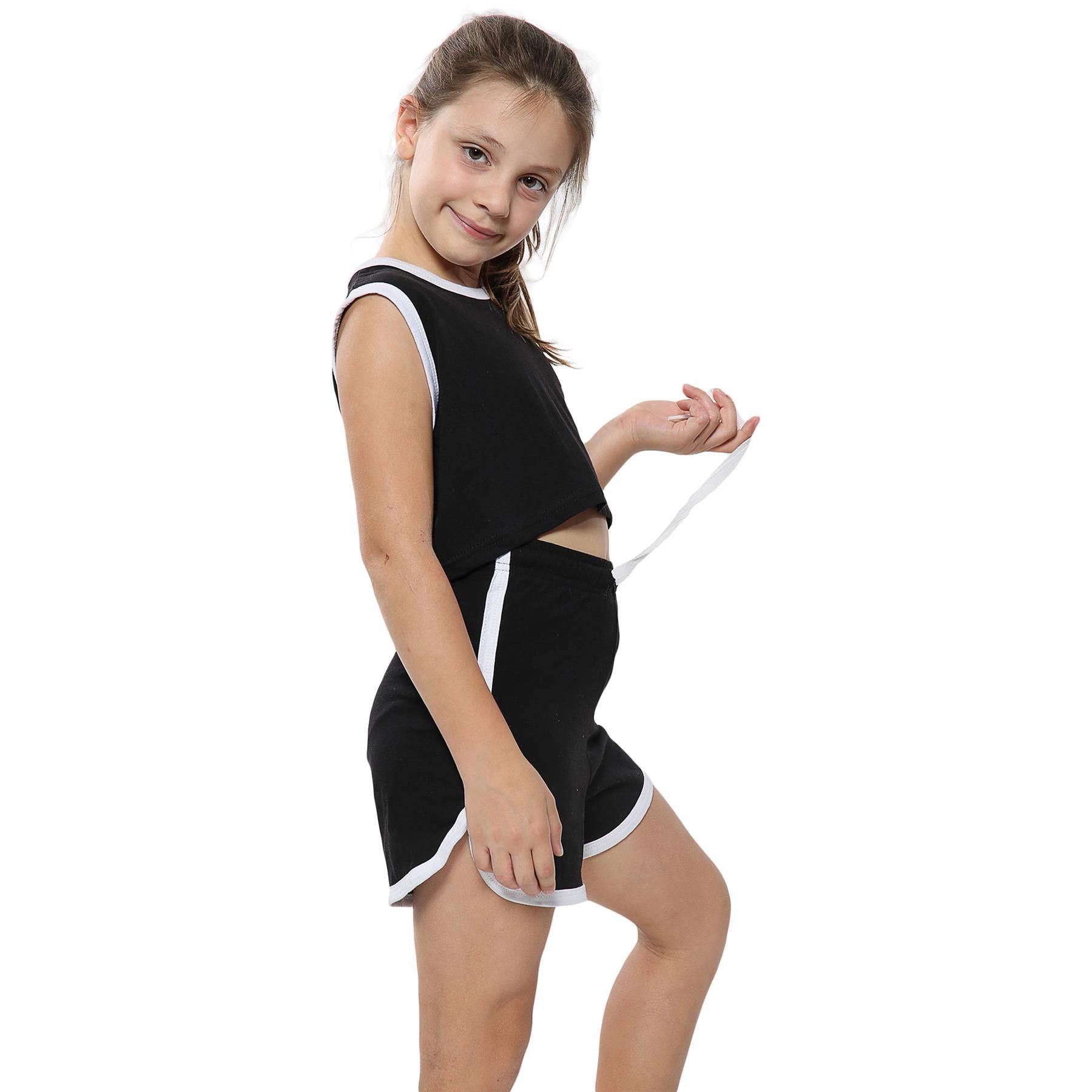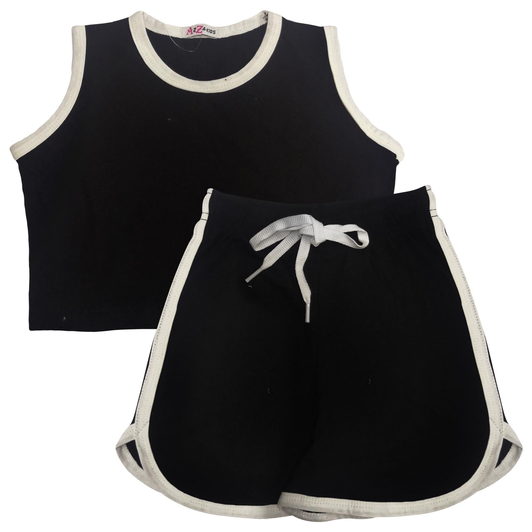 A2Z 4 Kids Kids Girls Shorts Set 100% Cotton Contrast Taped Trendy Fashion Summer Black & White T Shirt Top and Hot Short Pants Outfit Set New Age 5 6 7 8 9 10 11 12 13 Years