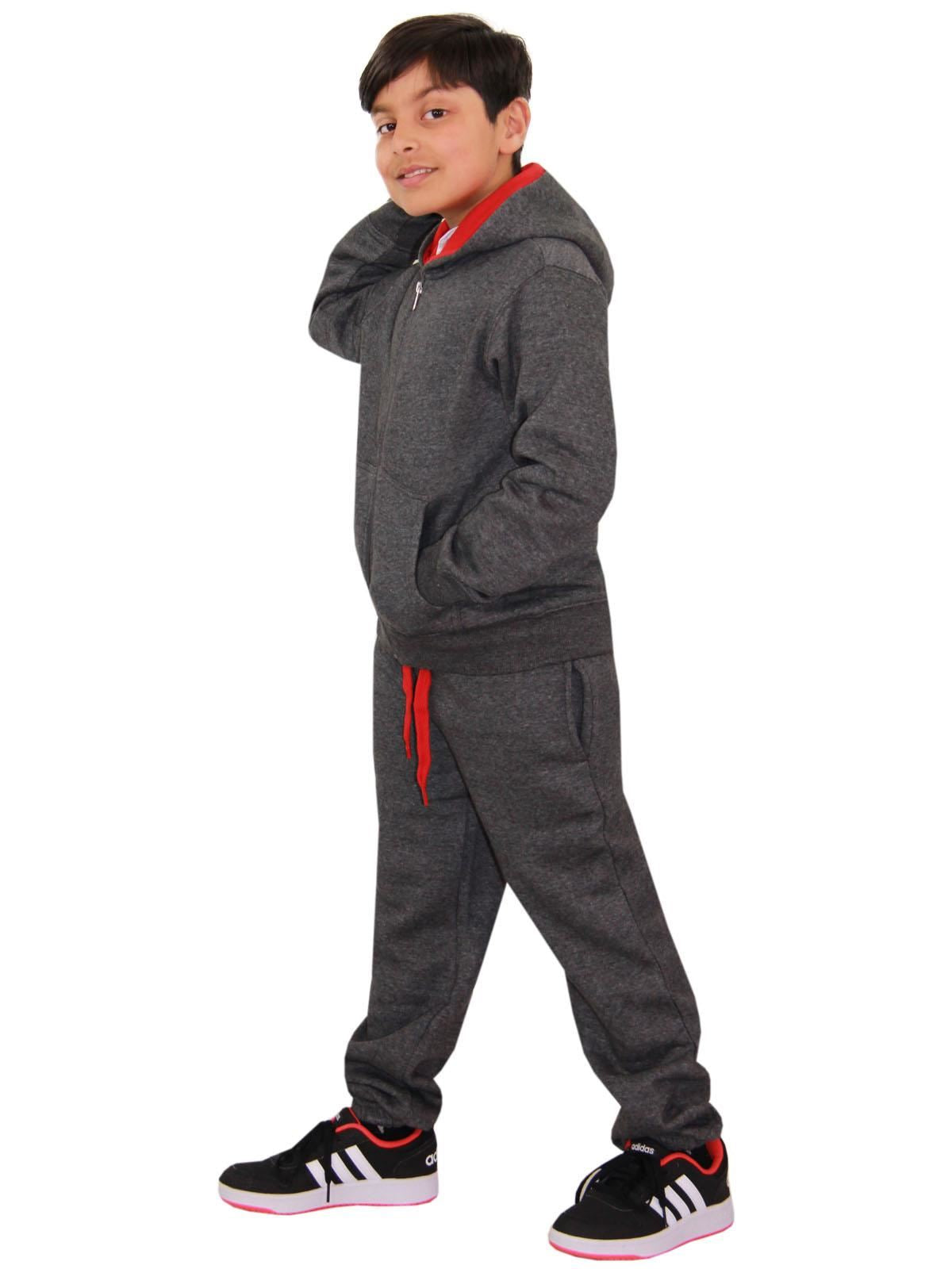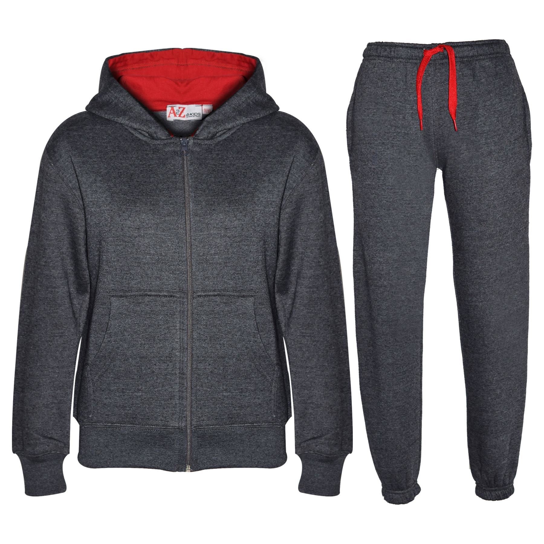 A2Z 4 Kids Plain Tracksuit Charcoal And Red Contrast Fleece Hoodie with Joggers Jogging Sweatpants Pants Sports Activewear Outfit Set For Childrens Girls Boys Age 5-13 Years