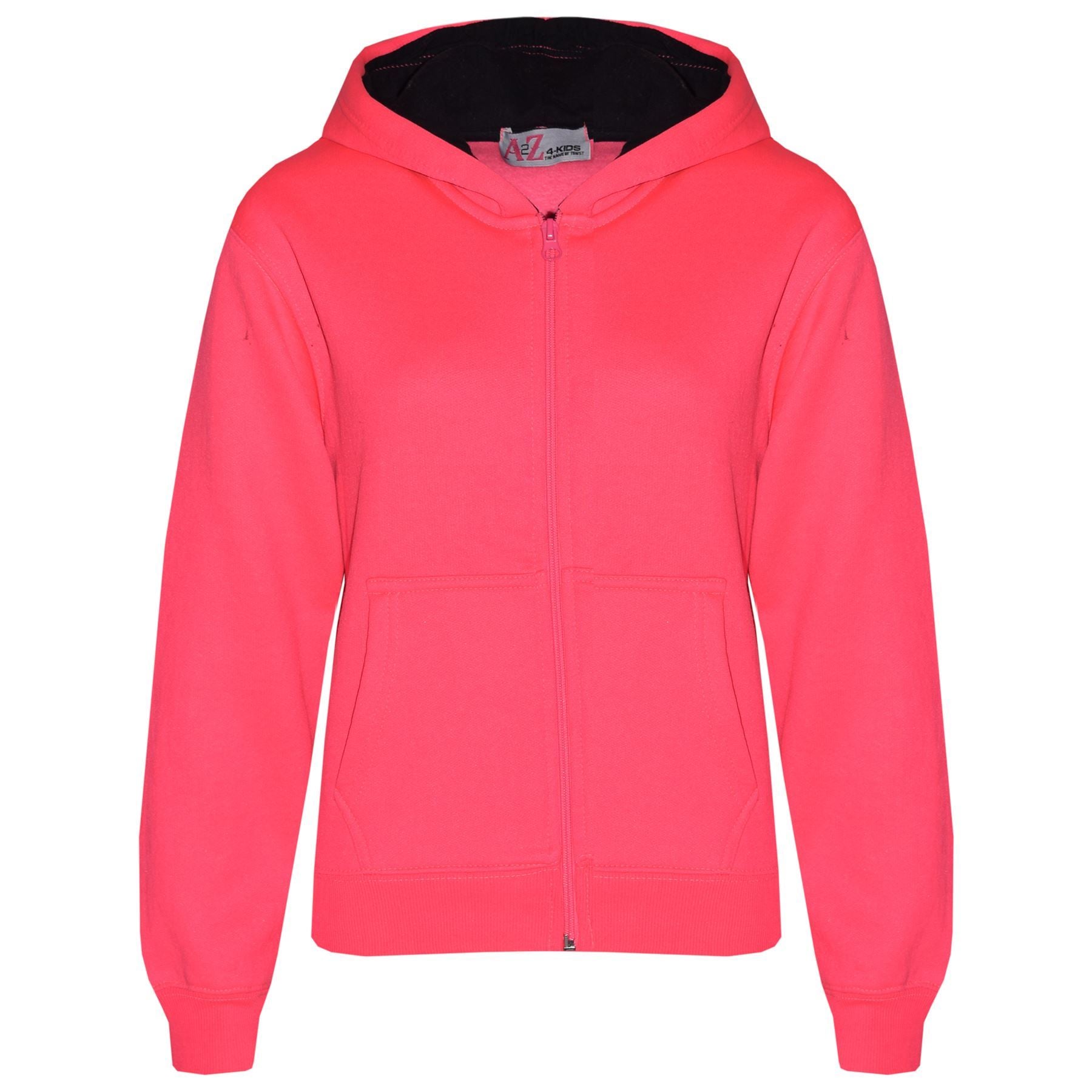 A2Z 4 Kids Plain Tracksuit Neon Pink And Black Contrast Fleece Hoodie with Joggers Jogging Sweatpants Pants Sports Activewear Outfit Set Childrens Girls New Age 5-13 Years