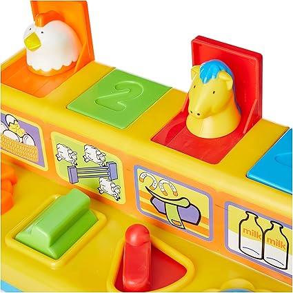 Get ready for some serious playtime! This colourful pop-up activity toy features bright colours, numbers, and cute animals like lambs, chicks, horses, and cows. It's perfect for babies and toddlers, guaranteeing endless. -
